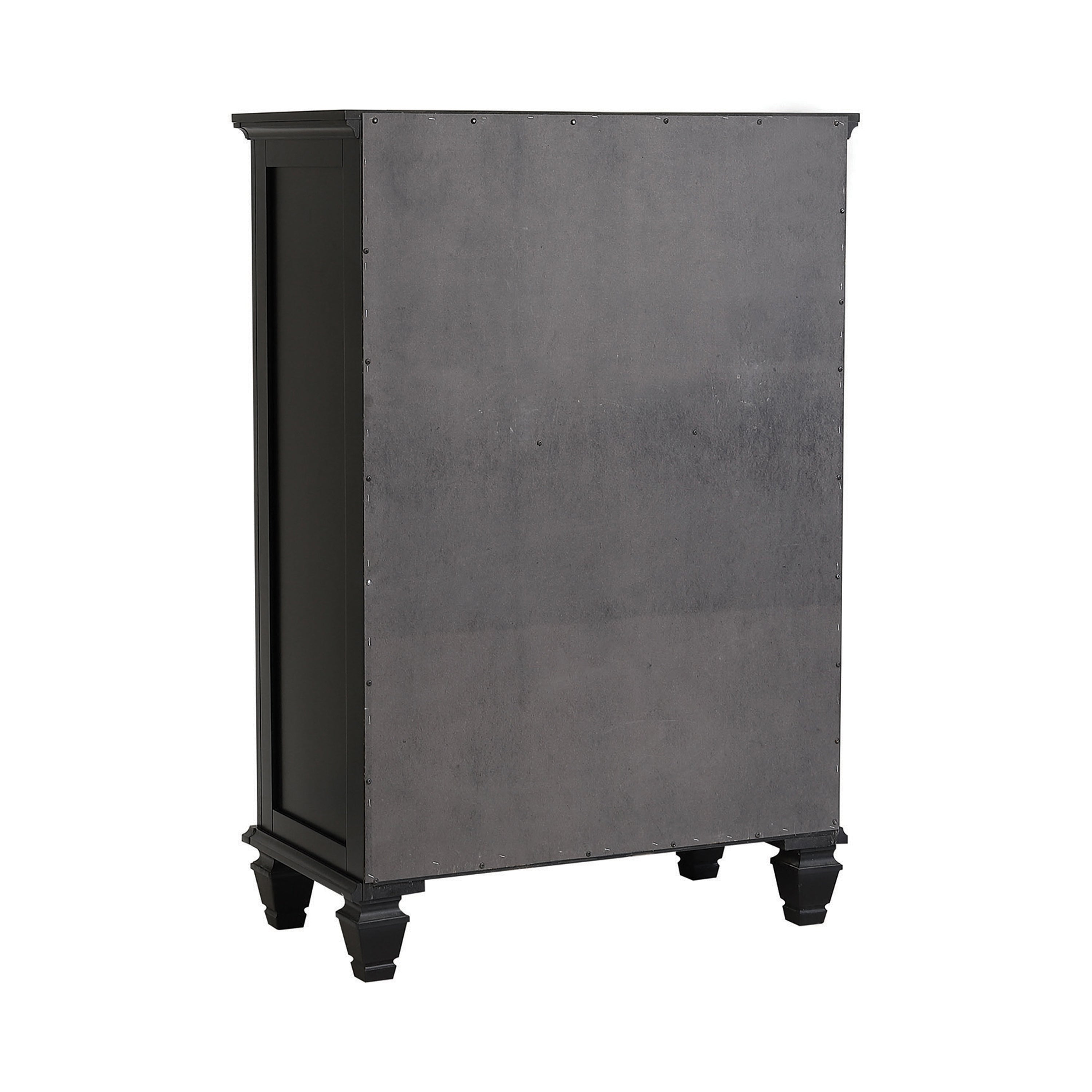 As part of the Sandy Beach collection, this noble-looking chest adds elegant simplicity to your master bedroom. It is forged with five drawers for storage of your shirts and shorts as well as your watches and other valuables. The top is spacious enough for several knickknacks and a small table lamp. Constructed from tropical hardwoods and veneer in a black finish. Also available finished white or cappuccino.