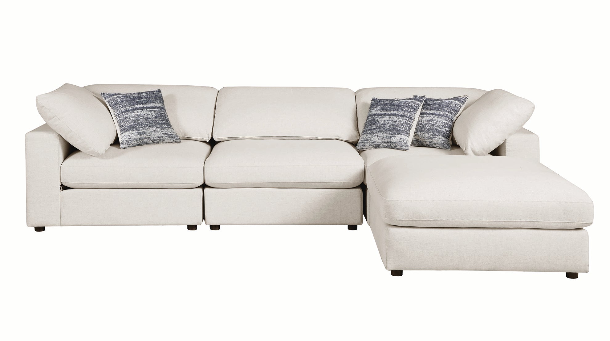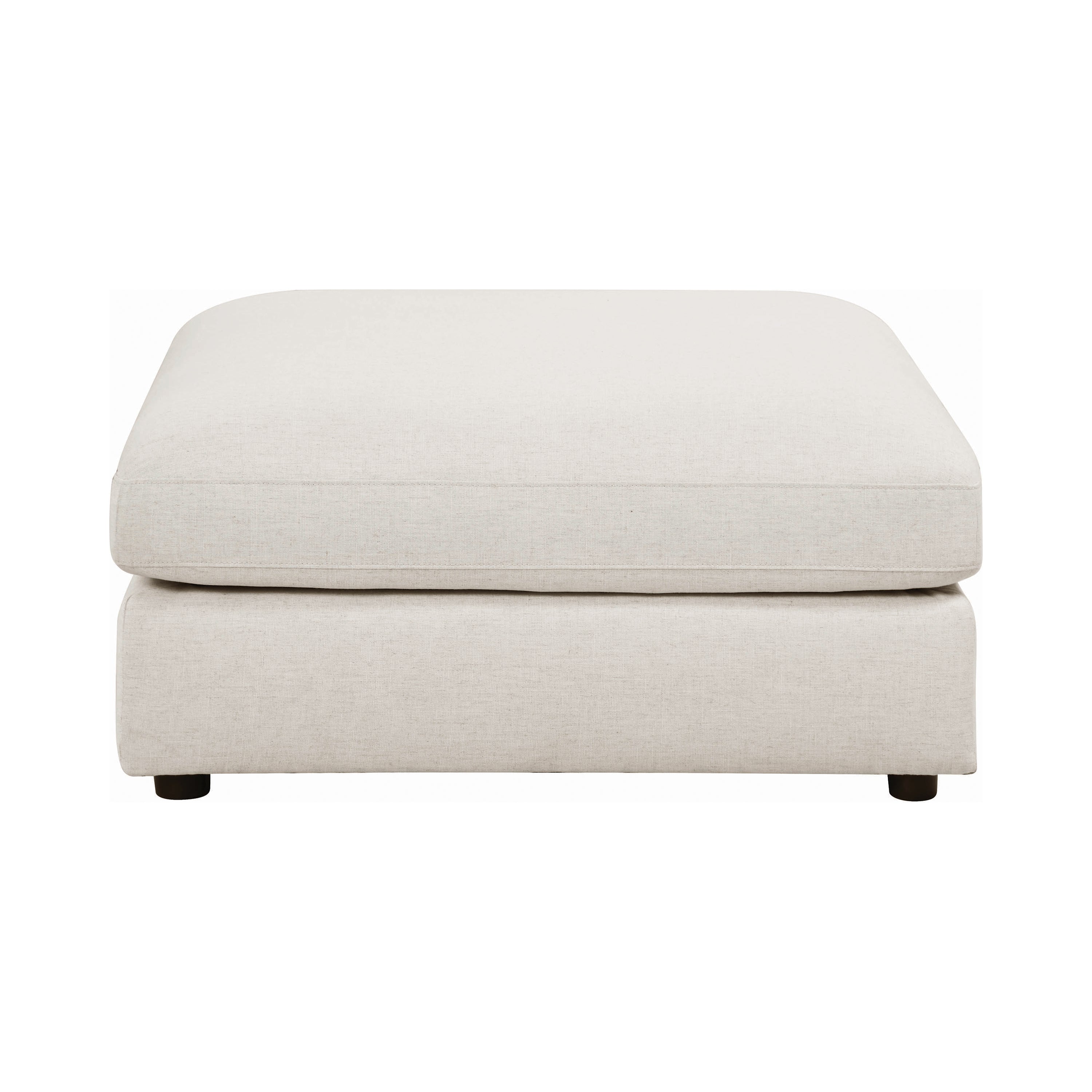 A proper sofa isn't complete without an ottoman. This one provides soft contours and minimalist design. It's stunning on its own, but pulls its weight beautifully in a modular set. The linen surface of the ottoman makes it durable and crisp. Put up your feet and relax in style.