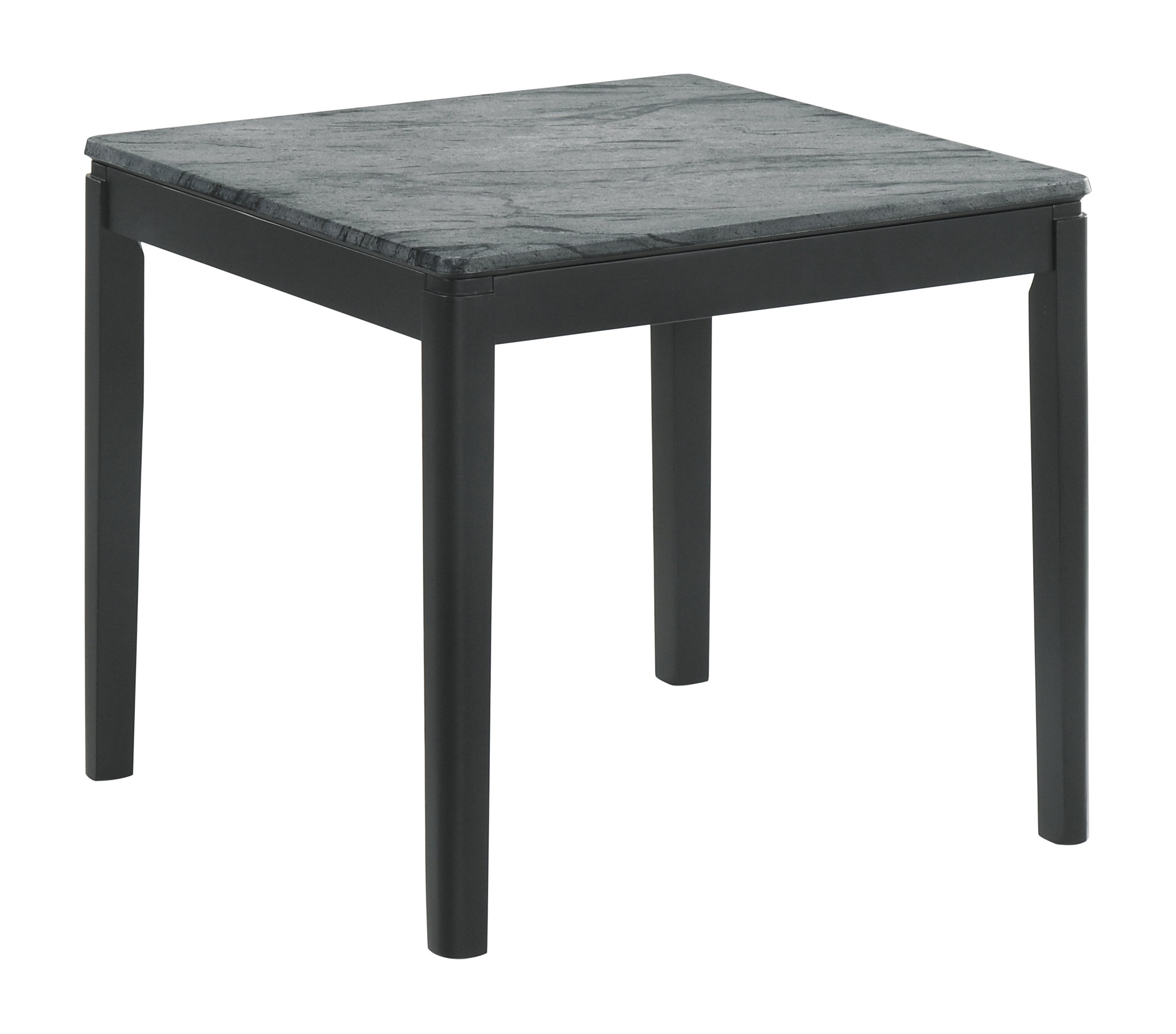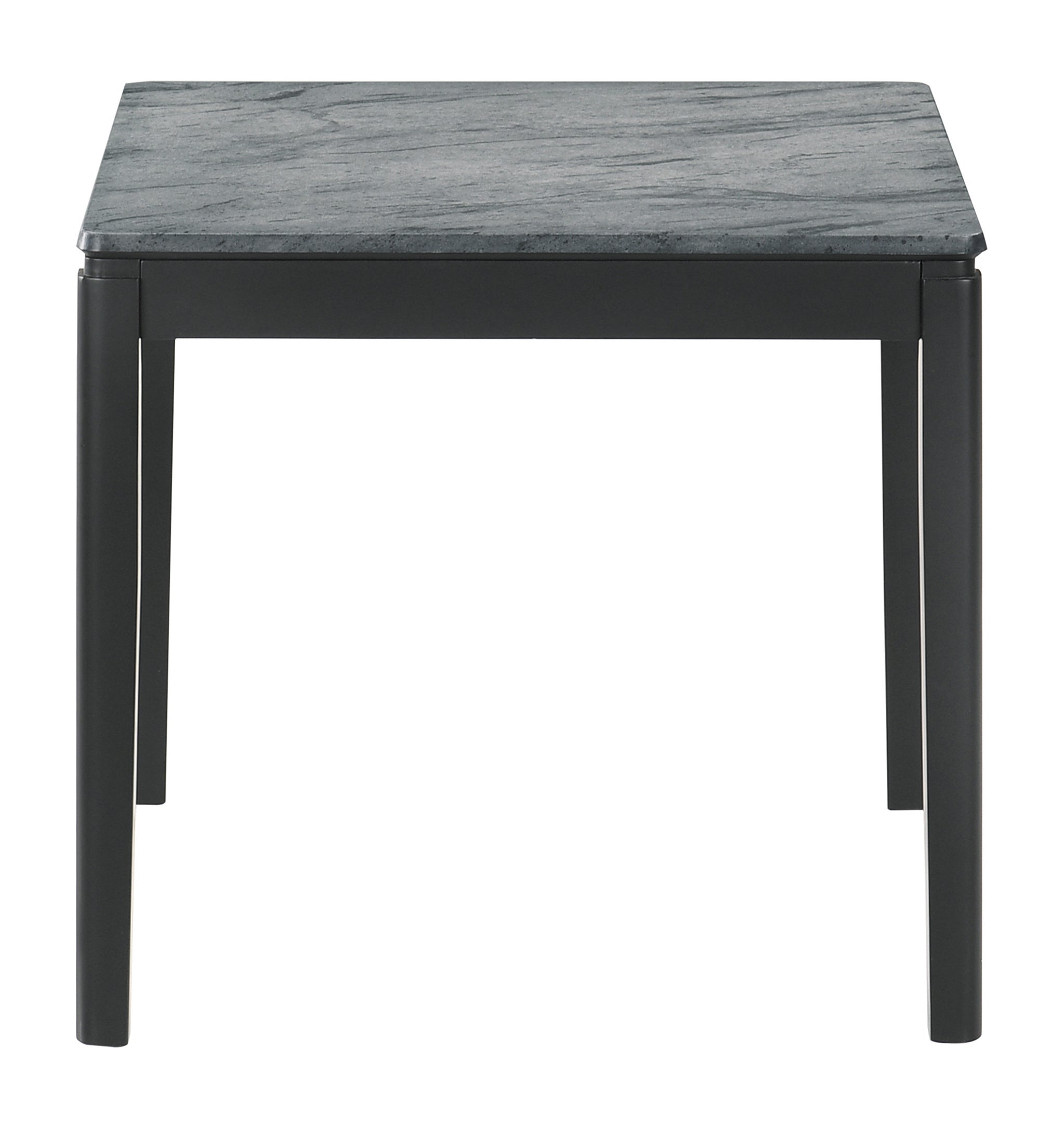 Sleek, clean lines and a minimalist aesthetic come together to create this sophisticated, modern end table. Made with a faux marble top in a grey hue with subtle striations for a natural, realistic effect, this end table offers an understated, contemporary vibe to a space. Across the tabletop is a sandy texture that further pushes the realistic look and feel. The rectangular tabletop rests neatly on a solid base with elegant legs that curve subtly at the top. Contrasting hues create a chic look with a black finished base.