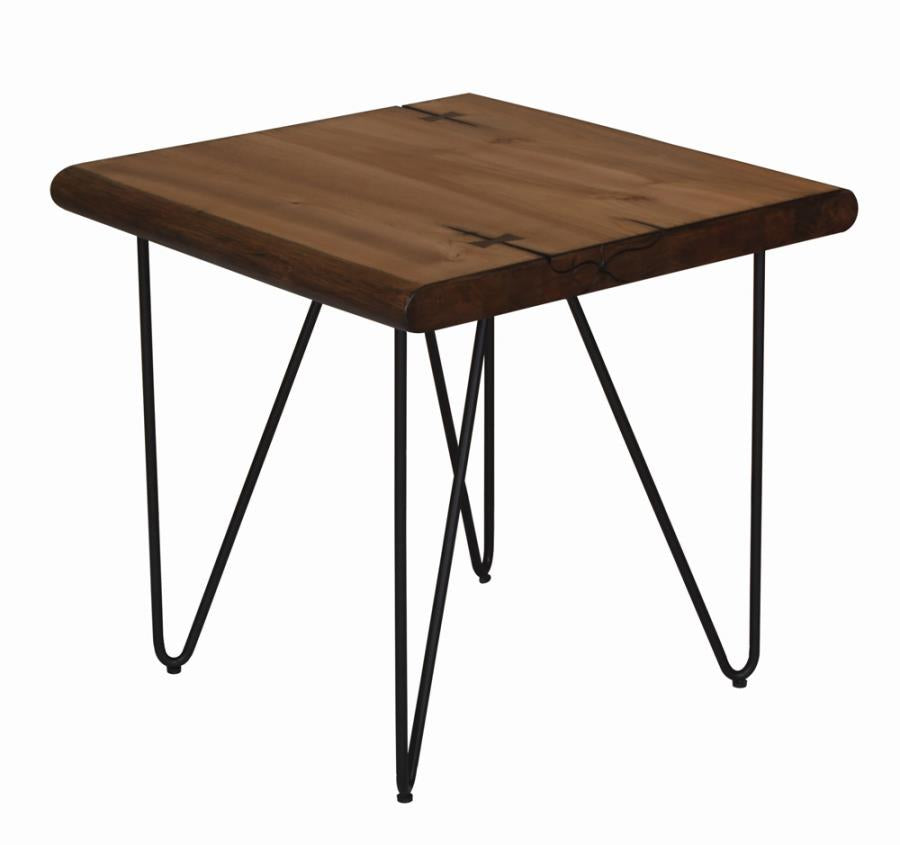Sleek and stunning, this beautiful mid-century modern-inspired end table features open hairpin legs. Great for adding a retro feel to a living room, the rounded angles in the legs marry with the straight lines from the top to offer structure. In a natural honey and gunmetal finish, the warm and cool hues intermingle to give this end table its industrial personality. Beautiful with a plant or sculpture, the elongated lines look great in neutral and bold spaces. Full of balance and depth, the airy base opens up rooms.