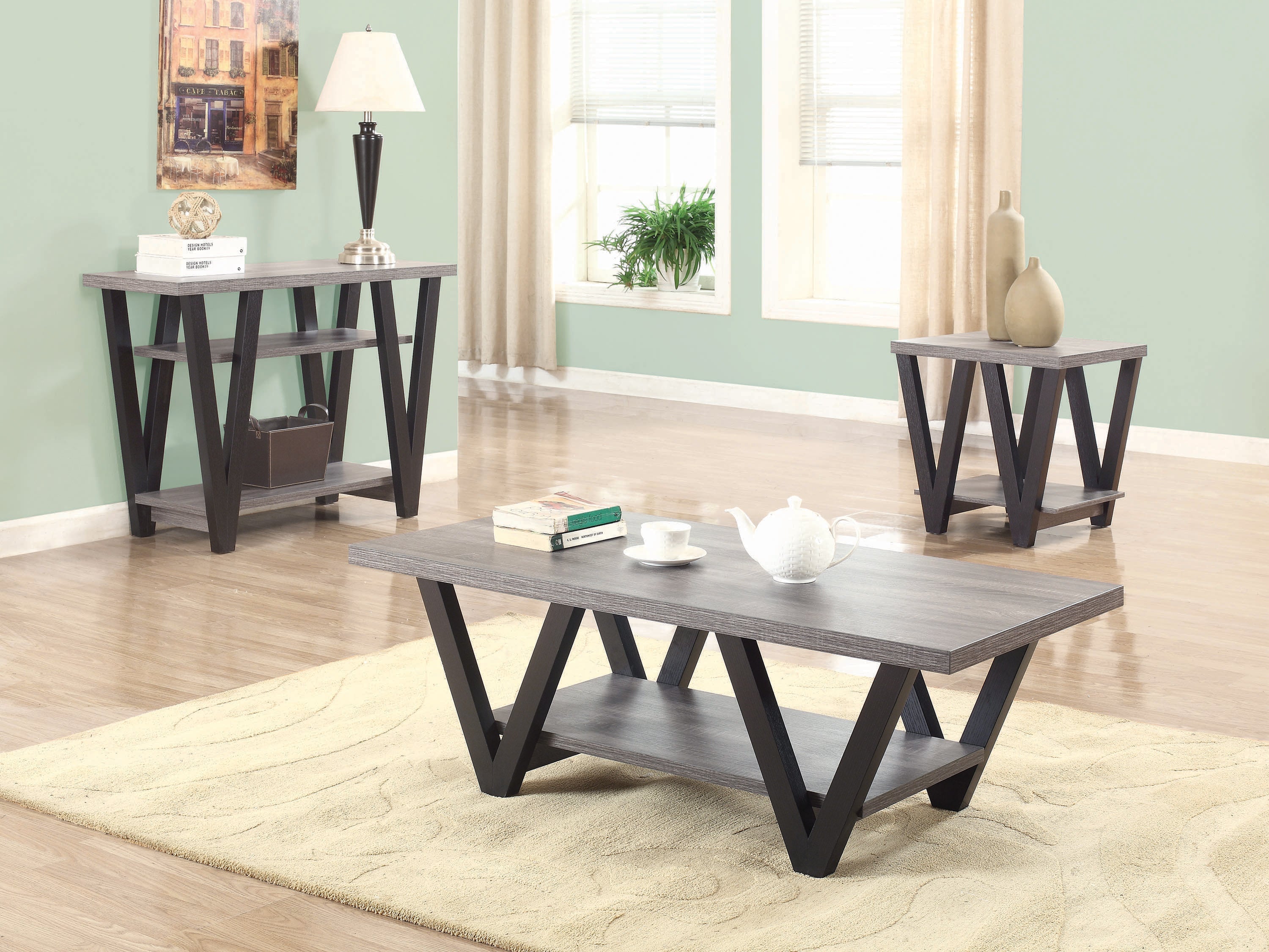 This end table has a mid-century modern style with an eye-catching twist. First, the square table top is ideal for either a lamp or a couple of decorative vases. There's a shelf below that is suitable for a small potted plant or souvenir from your travels. The noteworthy feature, though, is the W-shaped legs that give the table a panache that you'll love. Its contrasting black and grey design means it'll go well in a living room or den with any decor.