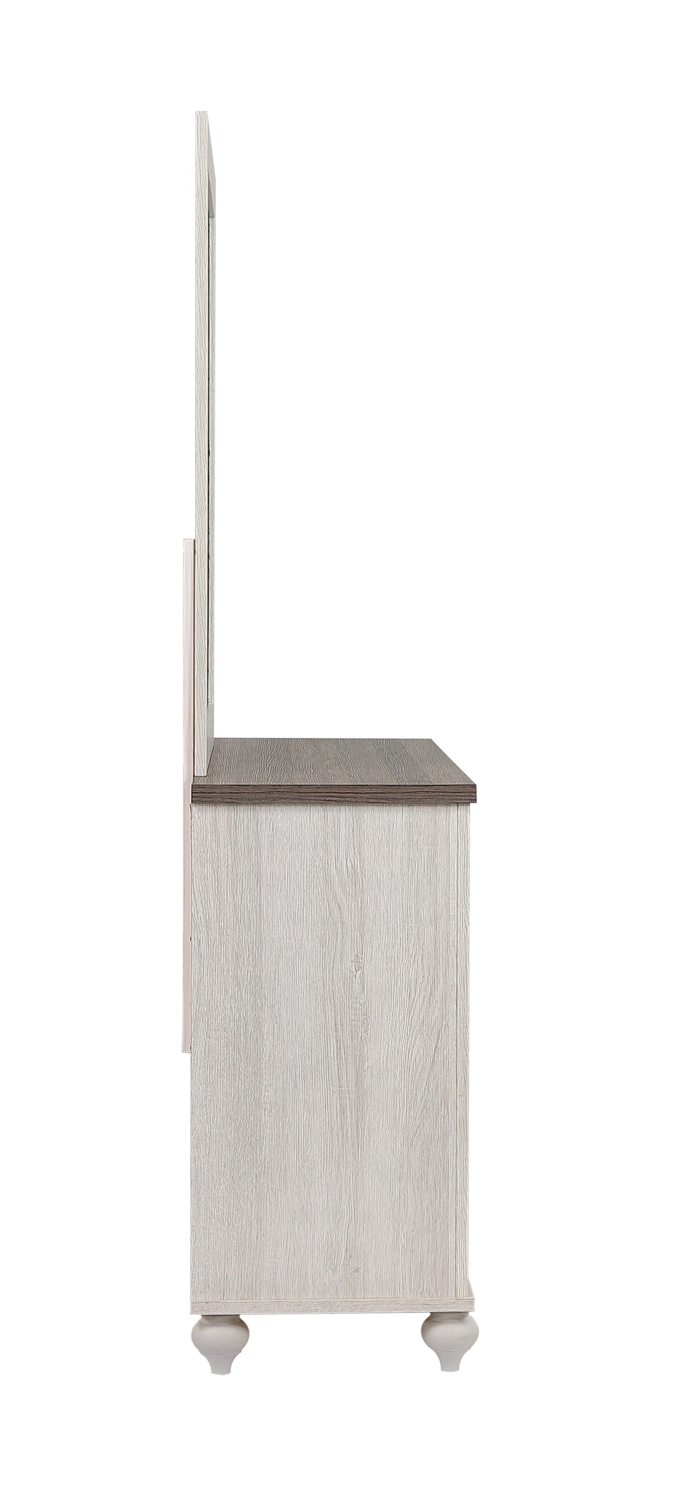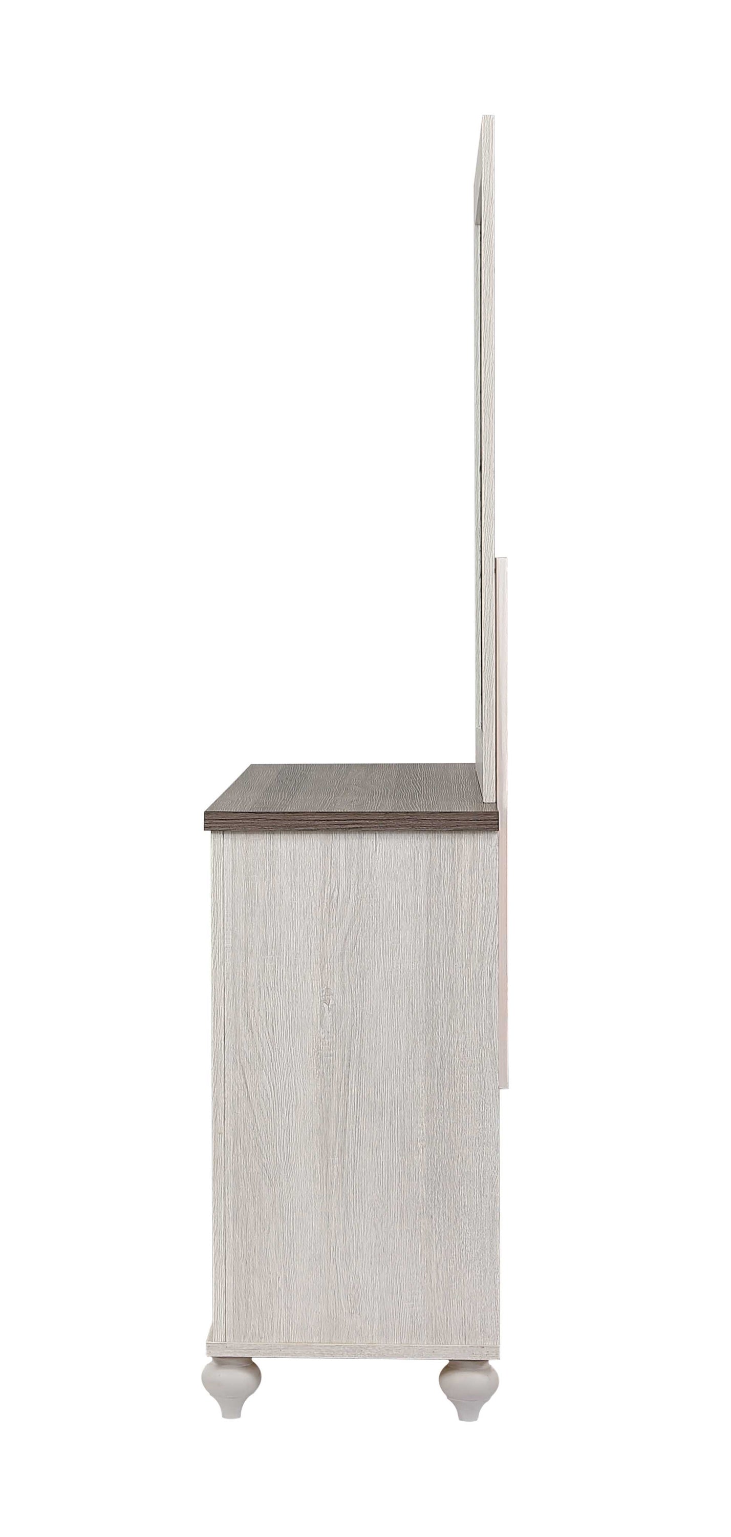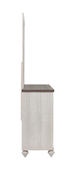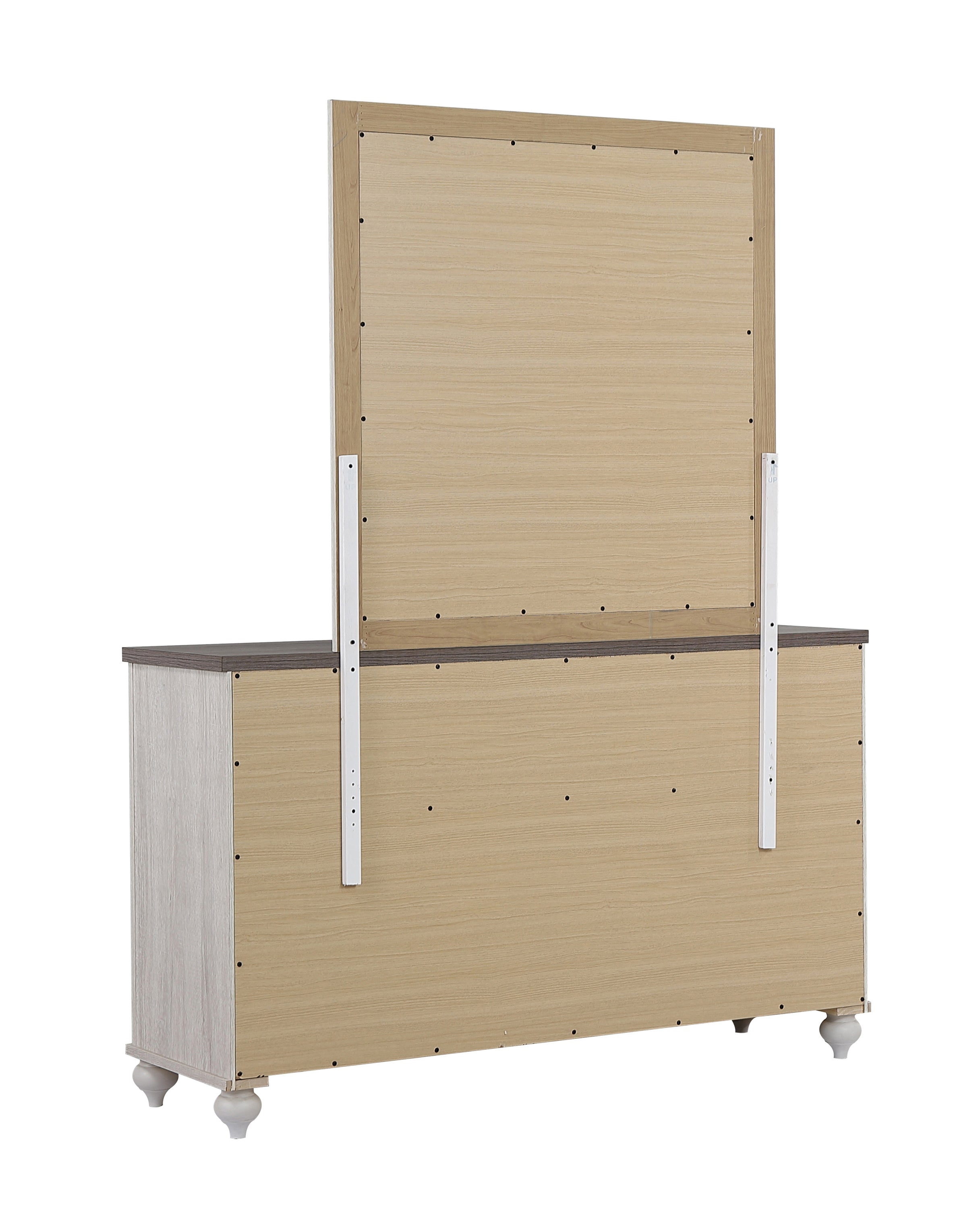 Hang a little pastoral charm with this transitional mirror. The rectangular design comes with clean, crisp lines. The mirror glass offers a clean, polished look. The frame itself comes in a vintage linen finish that conveys tranquility throughout any room. It looks great affixed to a matching dresser or as a standalone on the wall, adding a custom rustic presence to any bedroom, walk-in closet, or sitting room.