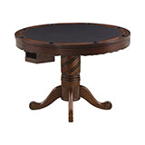 Turn your home into your neighborhood's favorite gathering spot with this versatile wooden game table. After enjoying appetizers on a smooth wooden dining surface, its top can be flipped around to reveal a beautiful card table covered with rich, dark green felt. Your guests will be delighted to enjoy a rousing game of poker or bumper pool after connecting over drinks and hors d'oeuvres. This table is beautifully crafted with a rich tobacco finish and intricately carved spiral designs. It comes complete with pool cues and balls for a complete package of fun entertainment.