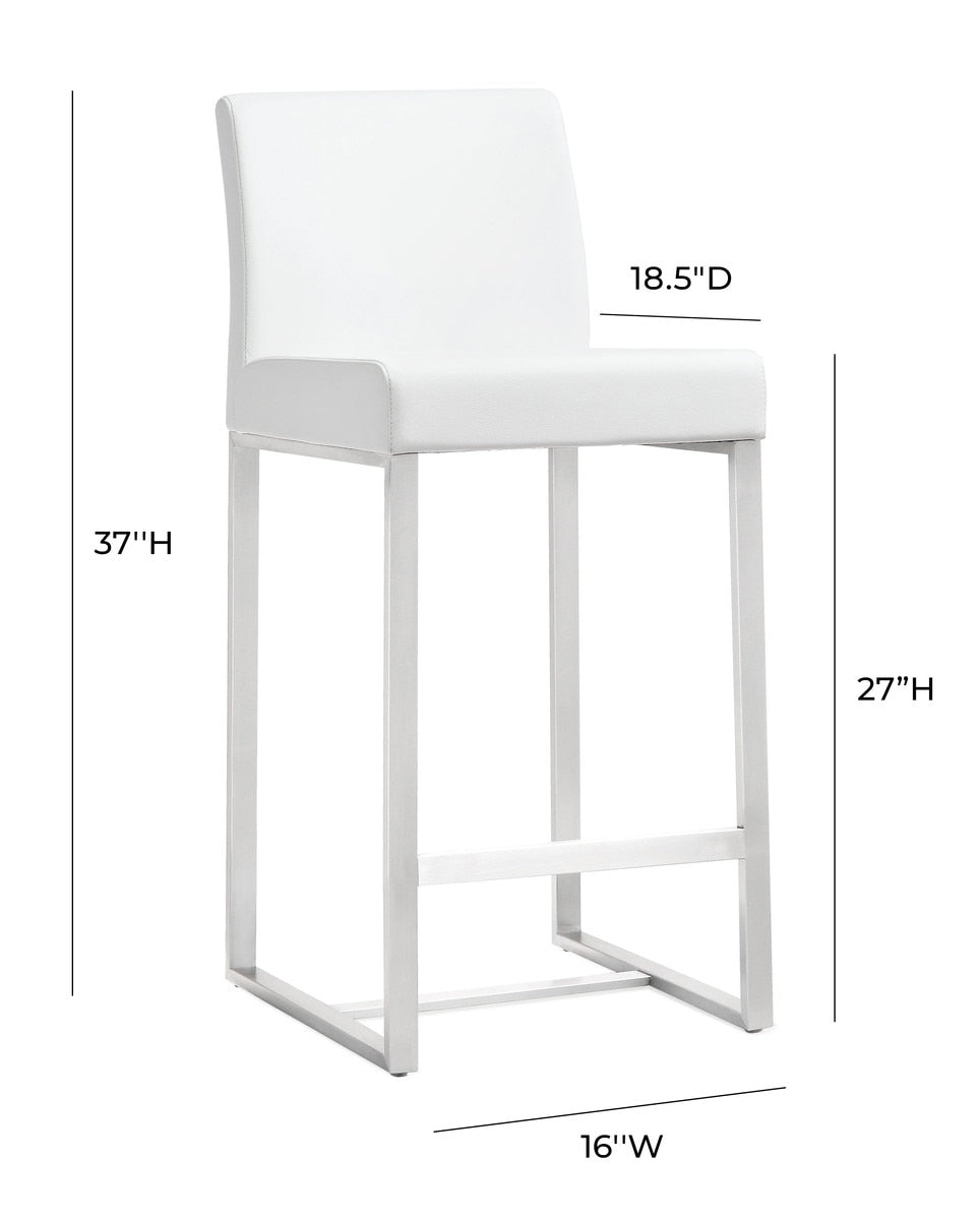 Denmark White Performance Vegan Leather and Stainless Steel Counter Stool - Set of 2 Model: TOV-K3634