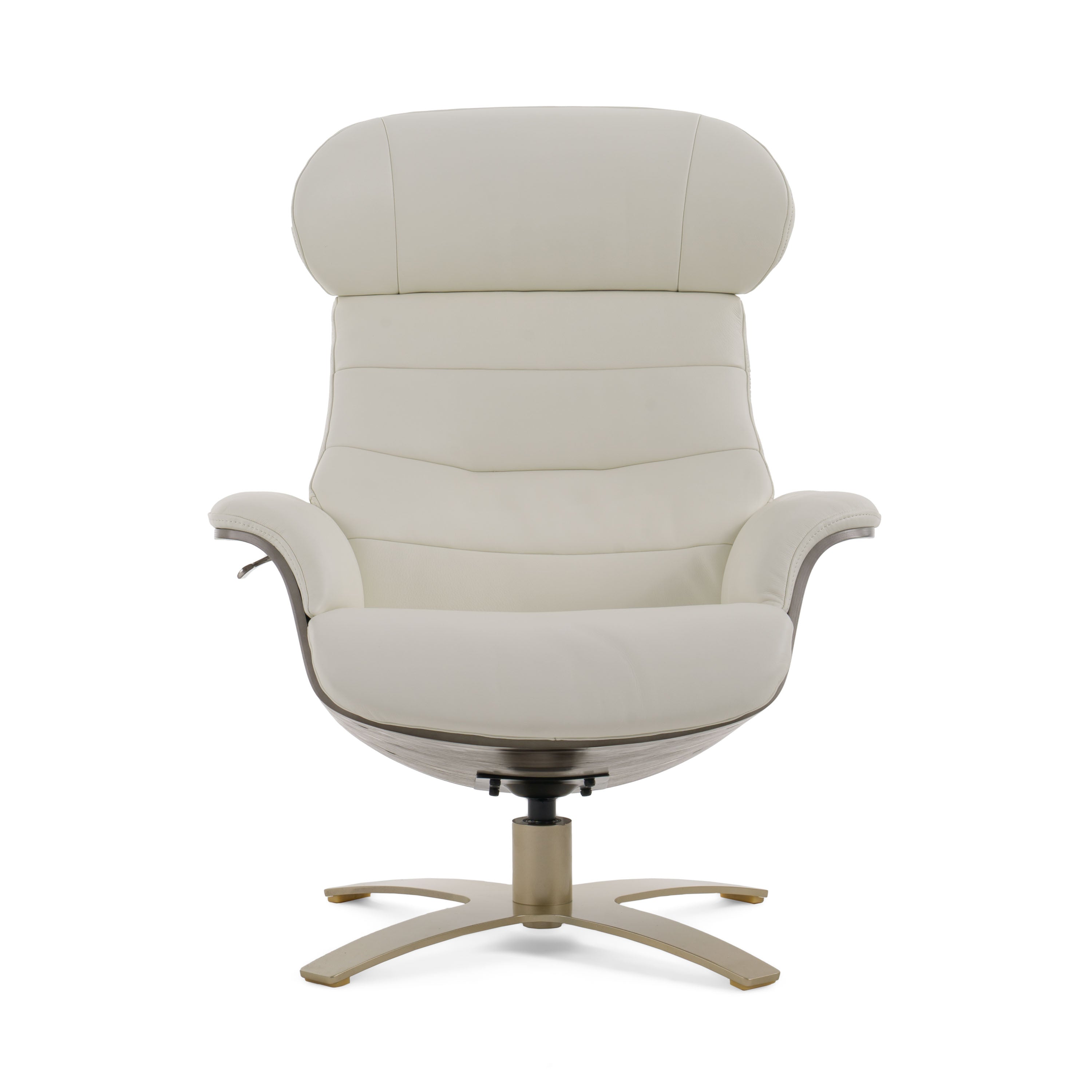 The Divani Casa Abrons chair and ottoman offers a unique and different place to put your feet up in your home. While the design and swivel feature resemble that of an office chair, the curvature of the back, adjustable seat height and headrest offer users exactly the right level of support. The Abrons features light grey genuine leather upholstery, wood veneer backing and black metal legs.