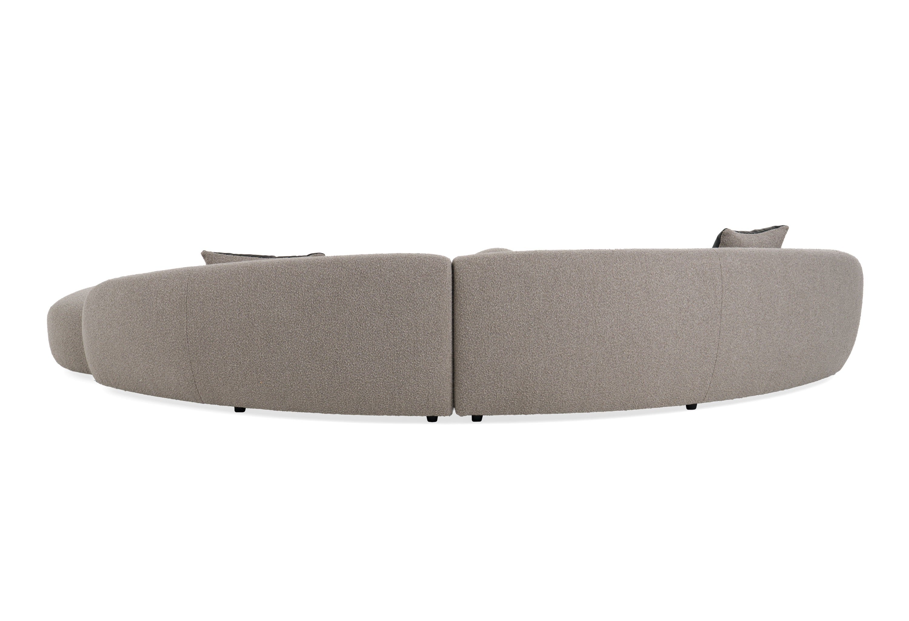 This sophisticated Curved shape Sectional Sofa will complement an open space in your living room. Glam appearance and perfectly contrasting accent pillows make this piece very elegant and stylish.