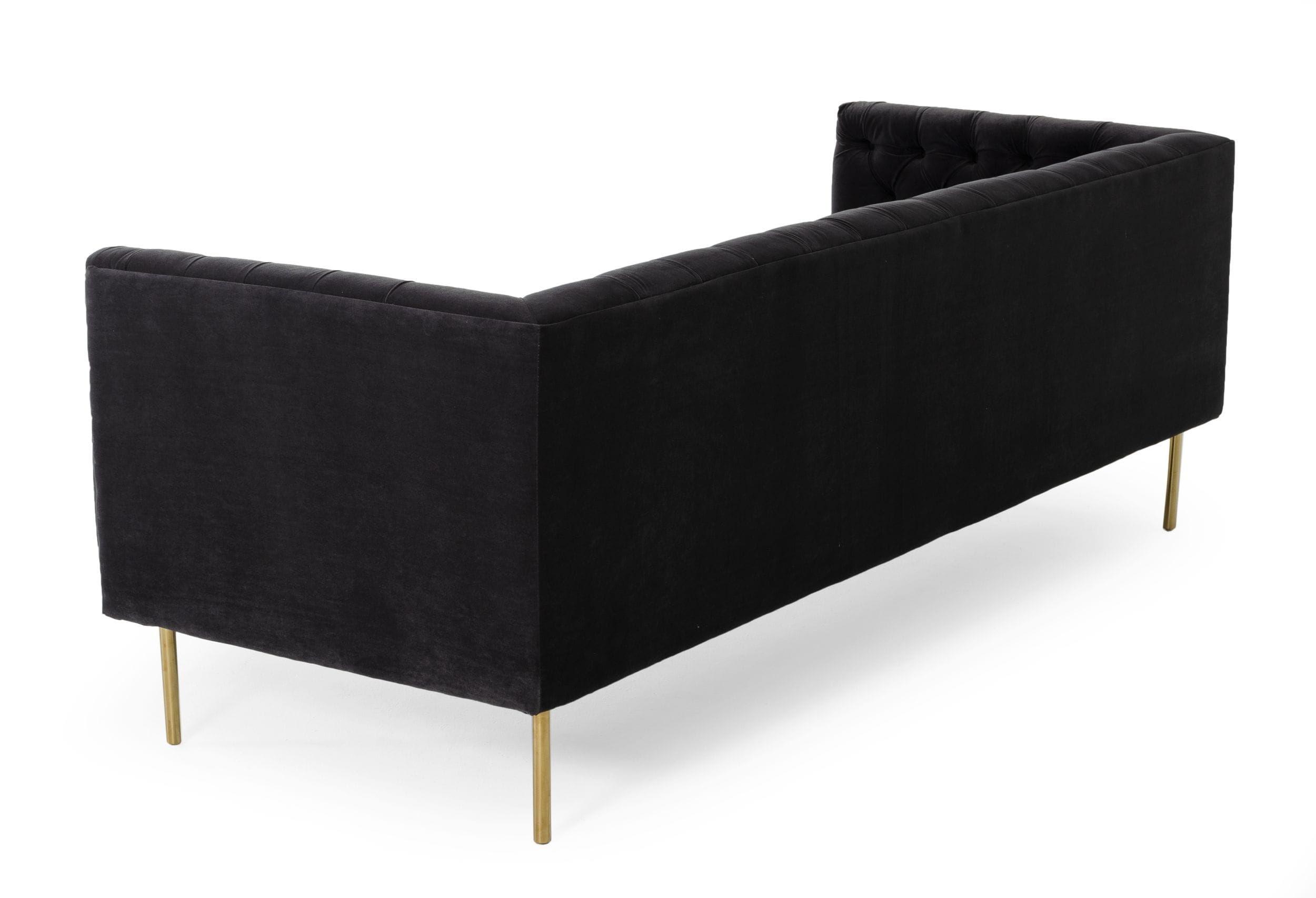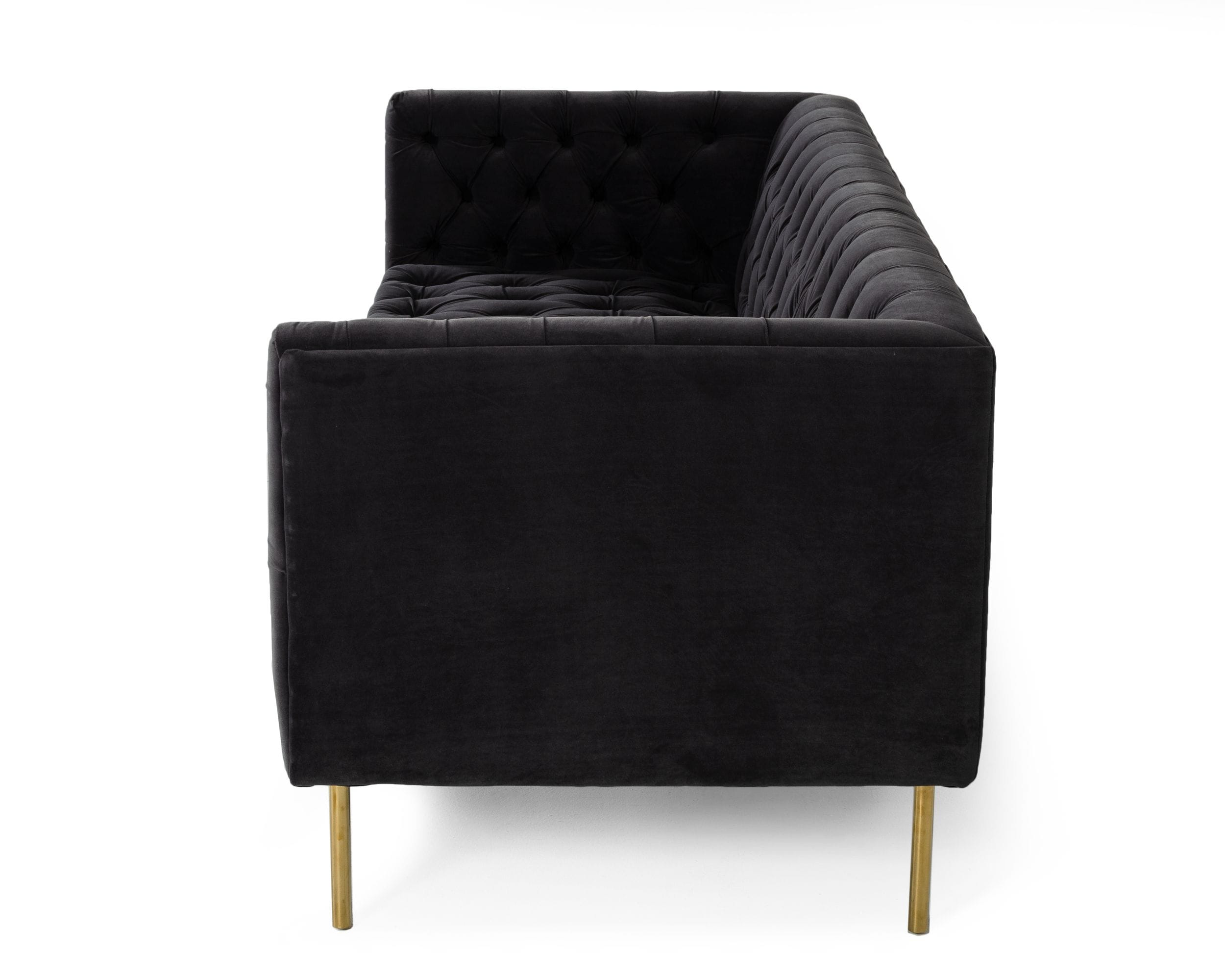 The Chavez Sofa is an elegant button diamond tufted sofa. The upholstery is an elegant dark grey velvet that will style well in a neutral industrial room or with some colorful pillows for a glam style. This luxurious sofa is sure to stand out in any modern contemporary home.