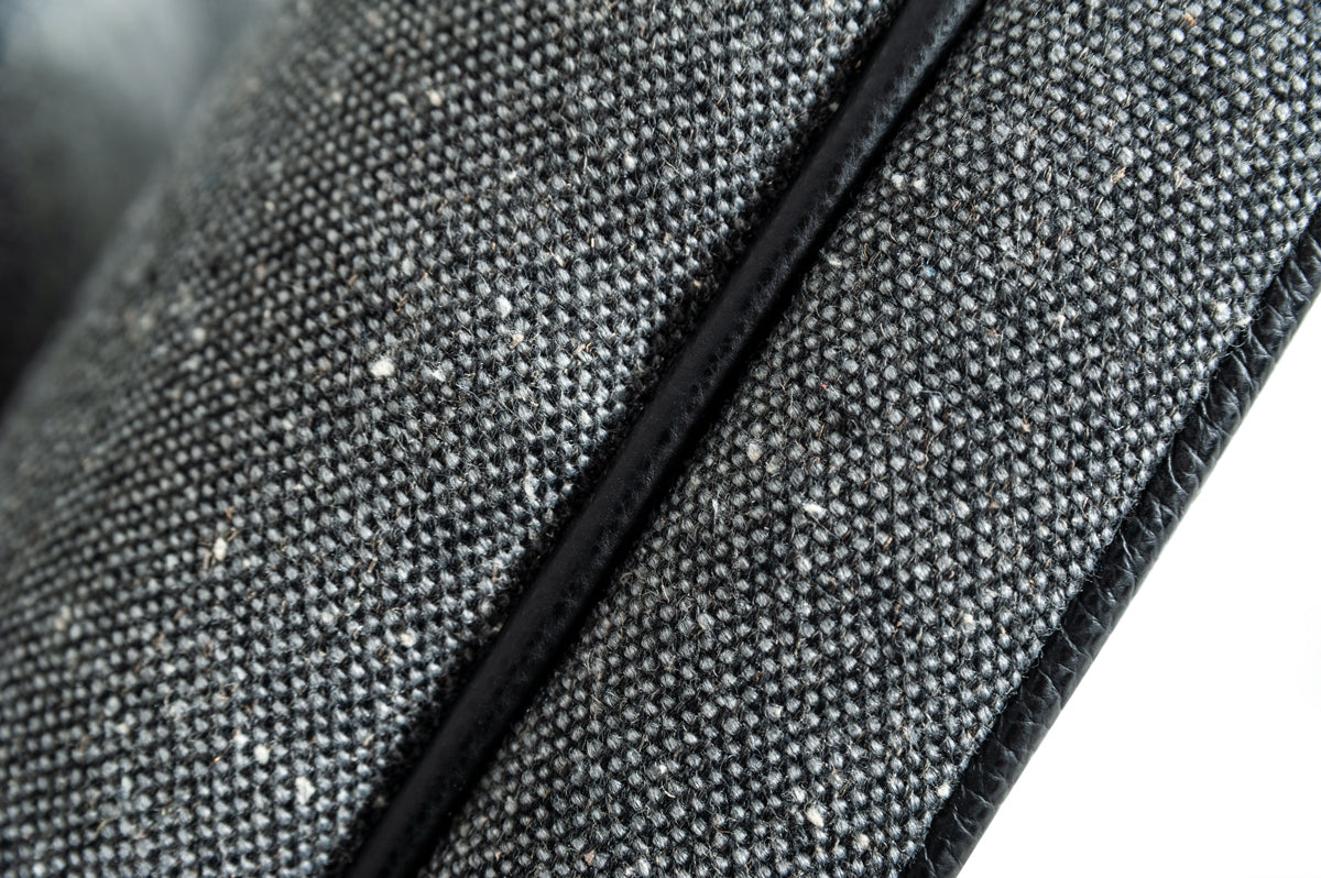 The Divani Casa Conway Modern Grey Fabric Sectional Sofa features a wide embracing-design upholstered in grey D-337 with black M1773 welting accent. This sectional sofa features equal height backrests and armrests and stands on sturdy conical wood legs. It includes 5 rectangular and 2 square throw pillows.