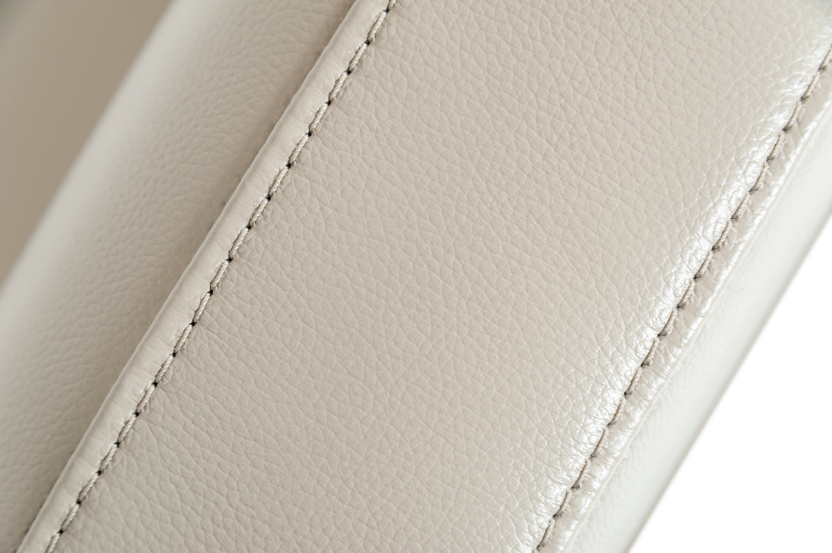 - Upholstered in Fine Grey Genuine Leather in the front and leather match in the back