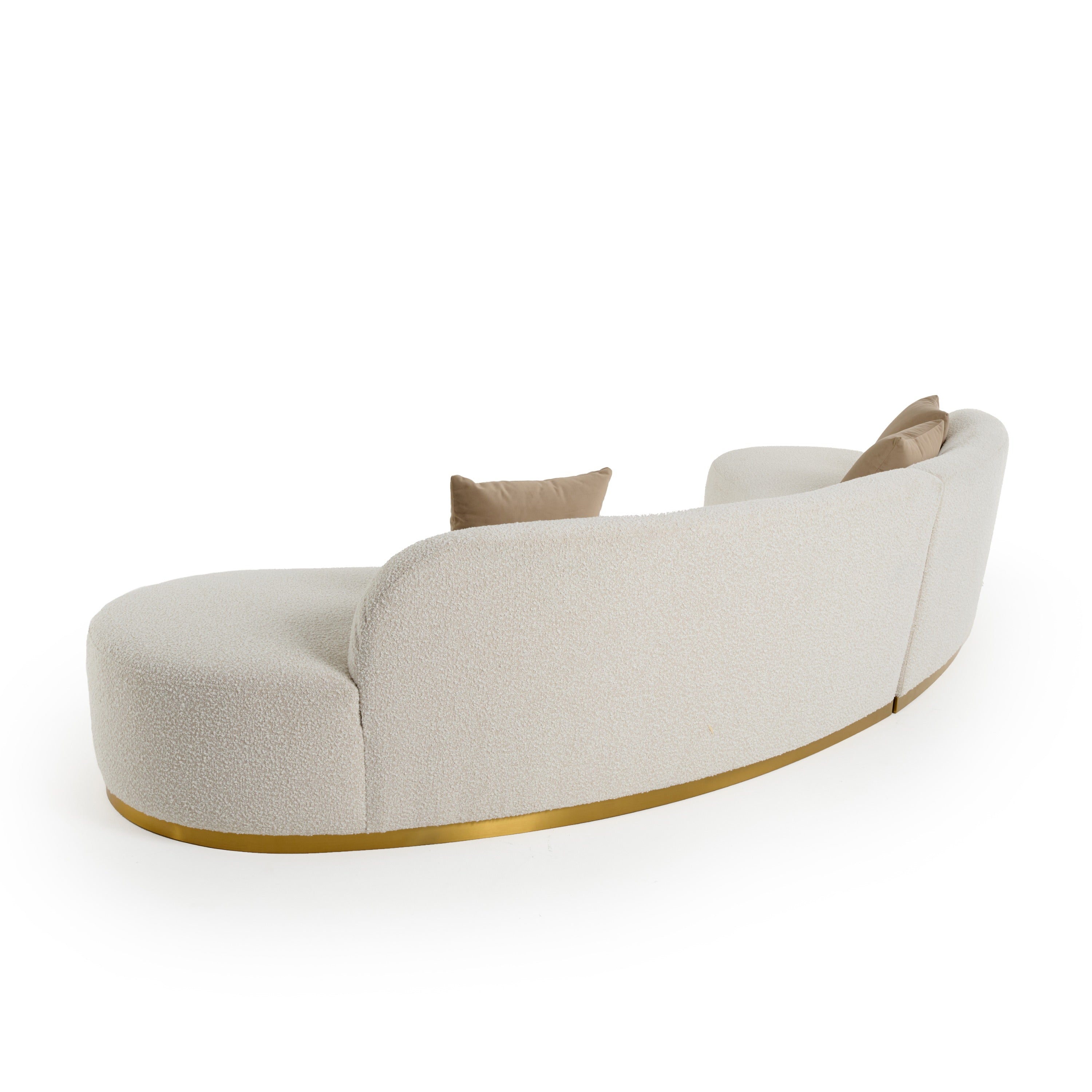 The Frontier Sectional is a stylish modern piece, perfect for a glam or contemporary home. make your home feel like an art gallery with this striking rounded sectional. The beige textured upholstery meets with the gold platform leg to create an enchanting contrast. An example of fine contemporary styles, this sofa is sure to become the star of any show.