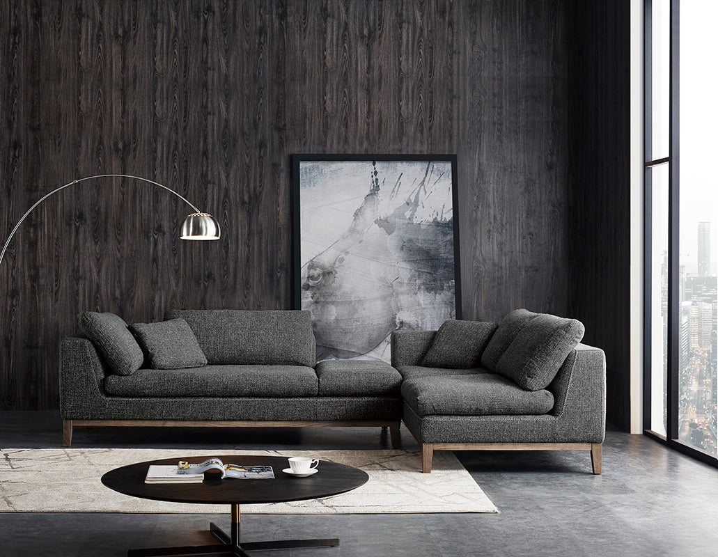 Divani Casa Hickman Modern Dark Grey Fabric Right Facing Sectional Sofa Model VGMB-C005-GRY