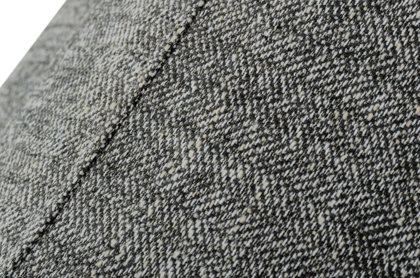 The Janina Sofa is a dark grey fabric sofa with drop square arms, stainless-steel legs and removable cushions. Two accent pillows round out this lovely piece. The dark color is striking and sure to make a statement in any traditional, industrial or modern home.