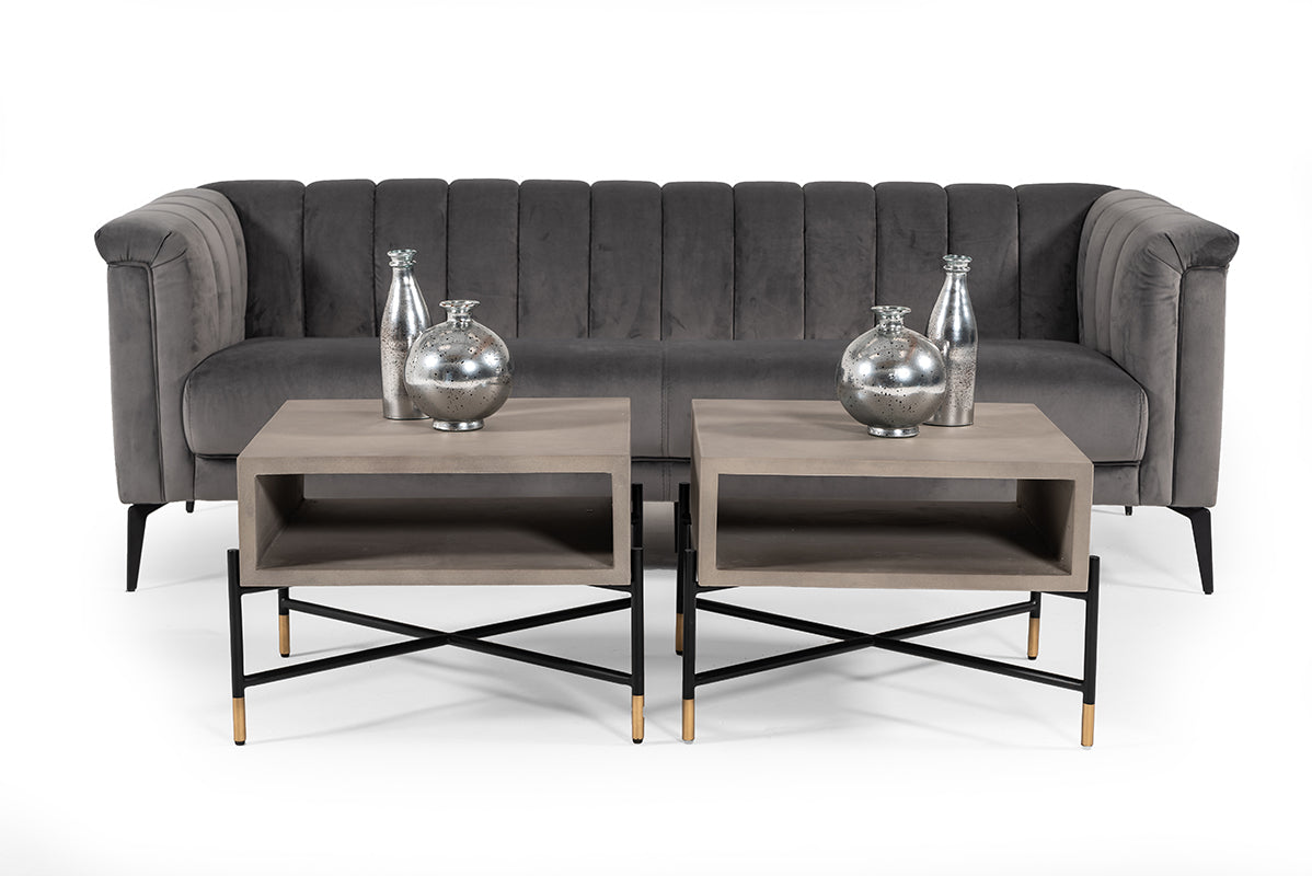Beautifully crafted, the Divani Casa Jeremy Modern Grey Velvet Sofa has a solid wood frame. It features high-density foam cushions upholstered in charming grey velvet fabric so you can lean back and relax. The channel tufts on the front of the back and the arms that are aligned at the same level added to the convenience of this sofa. Sturdy support from angled metal legs and a tubular shape leg in the middle keep this sofa steady. Requiring some assembly, this modern grey velvet sofa elevates the welcoming ambiance of your living room and is equally useful for a home office, a sitting room, and the bedroom.