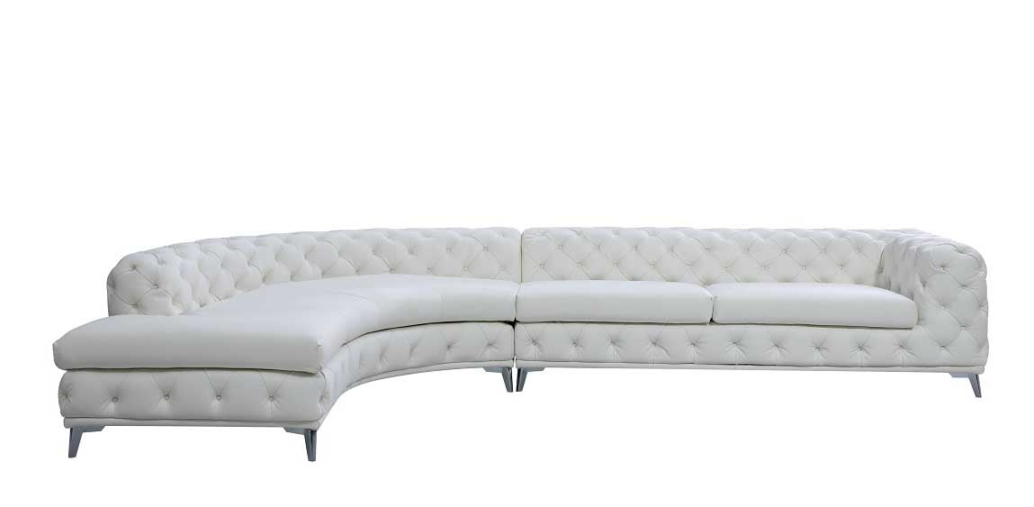 This Tufted Leather Curved Shape Sectional has a classy Contemporary appeal and will never go out of style. Complement it with a round coffee table for complete elegance.