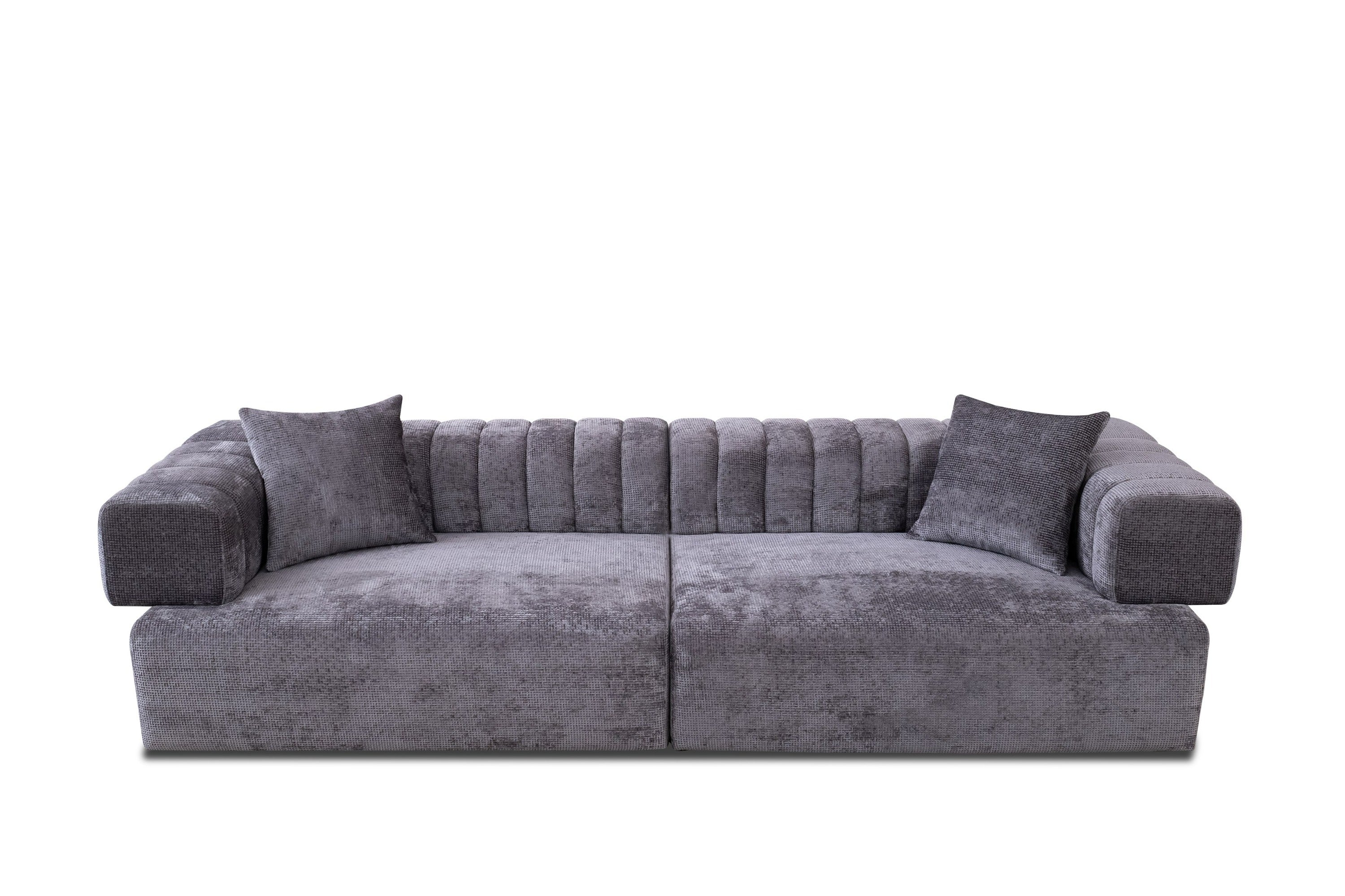 The Divani Casa Moreno is a striking modern four-seater sofa, expertly crafted in a sleek grey fabric. Its plush, quilted design adds a touch of sophistication and comfort, making it a perfect centerpiece for contemporary living spaces. The sofa features ample seating space and includes stylish accent cushions that enhance its overall appeal. With its clean lines and inviting texture, the Moreno effortlessly combines elegance and functionality, becoming an ideal choice for both relaxation and entertaining.