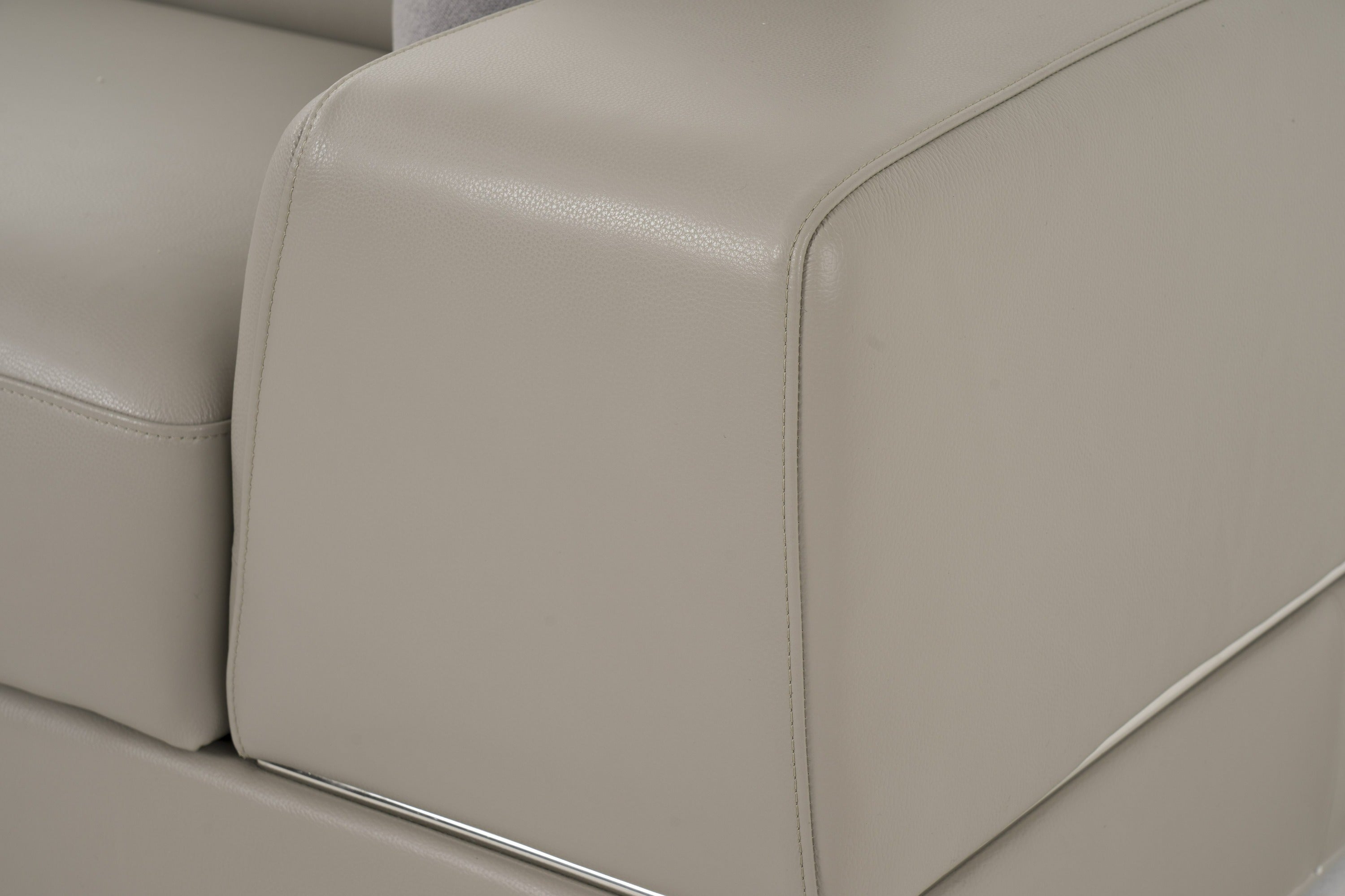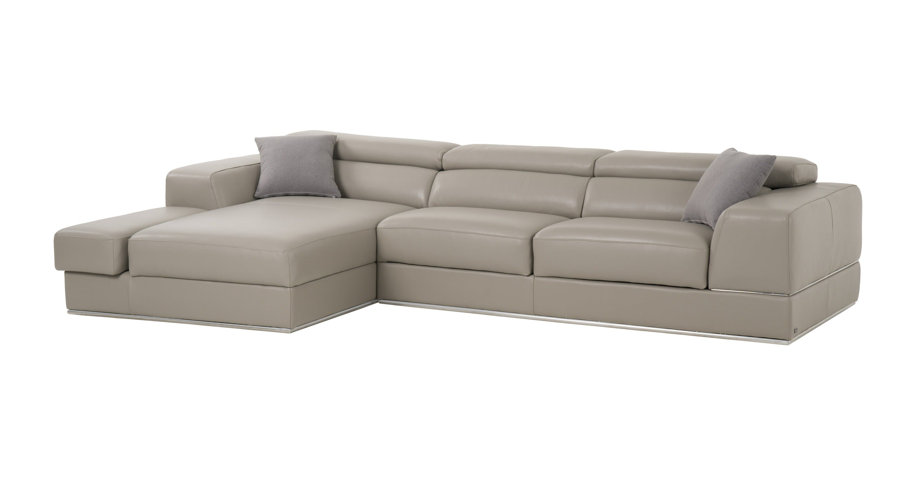 Versatile and modern, the Divani Casa Pella Mini Modern Grey Leather Sectional Sofa is stylish and compact enough to fit a small space. It consists of a left facing chaise and a love seat that is adequately wide that promote convenience. It features three adjustable headrests and slide-out cushions providing your ergonomic support, allowing you to relax better while seated or lazing down on the chaise. It is fitted with a dark brown armrest tray beside the chaise where you can put your cup, drinks or snacks while reading a book or watching a movie. Chrome accents lend a striking blend while plastic legs provide sturdy support to this modern sectional sofa.