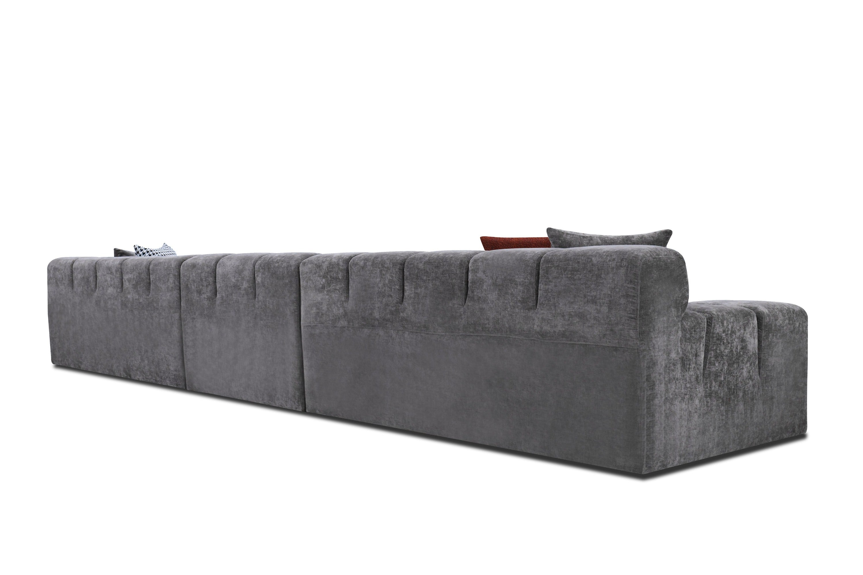 The Divani Casa Rhonda is a modern four-seater sofa that effortlessly blends style and comfort. Its sleek, low-profile design features a striking grey fabric with plush tufted detailing, adding a sophisticated touch to any space. The sofa is accentuated by strategically placed decorative cushions in varying textures. Its linear silhouette and minimalist aesthetic make it an ideal centerpiece for contemporary living rooms, inviting relaxation and conversation. This versatile piece seamlessly enhances both casual and chic décor, showcasing a balanced harmony of function and modern elegance.
