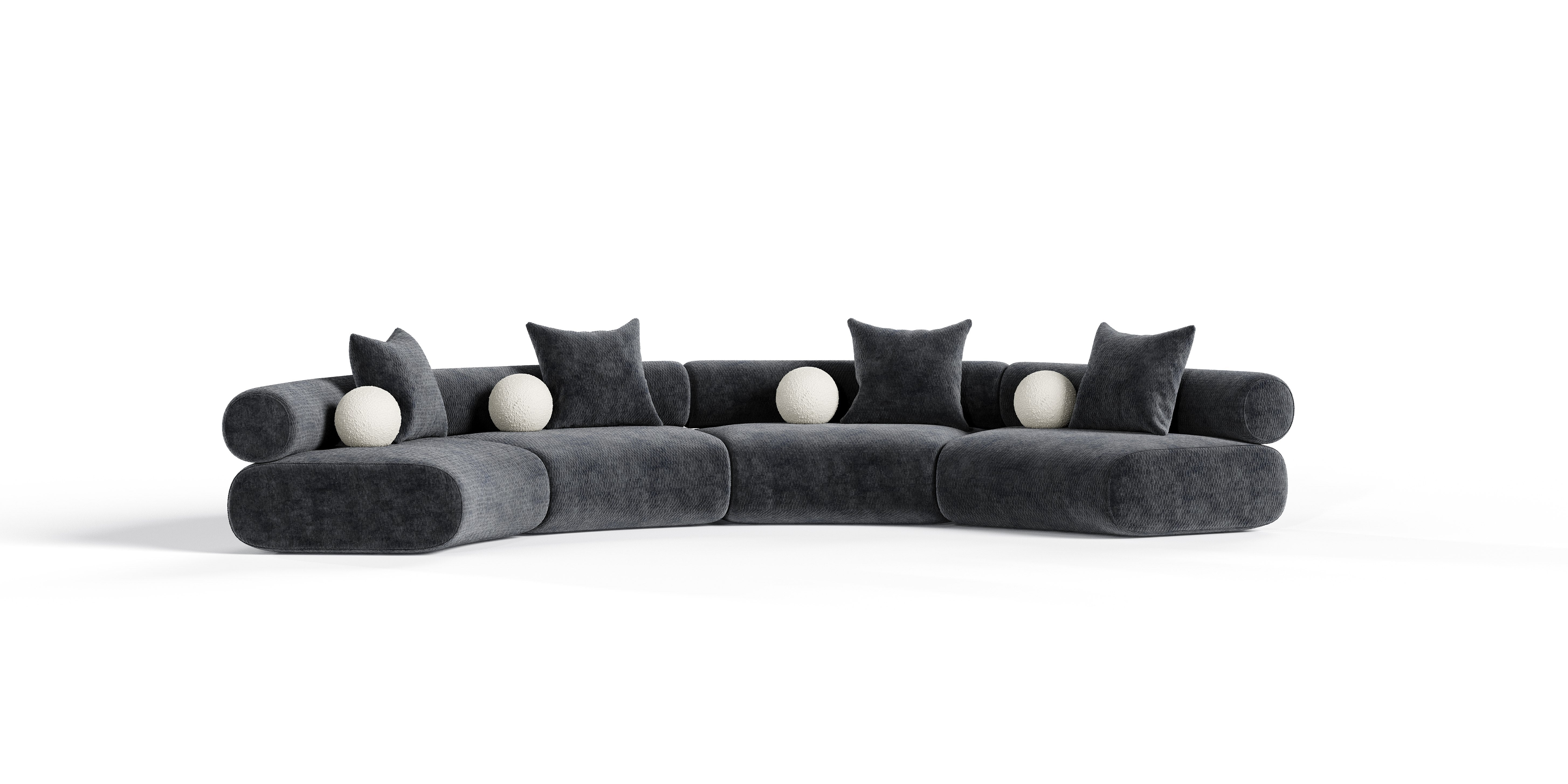 This is a Beautiful and Quality Divani Casa Simpson Contemporary Dark Grey Fabric Curved Modular Sectional Sofa With Throw Pillows 4 Piece Sectional Model VGOD-ZW-23018-GRY-MOD-4-Piece Sectional
