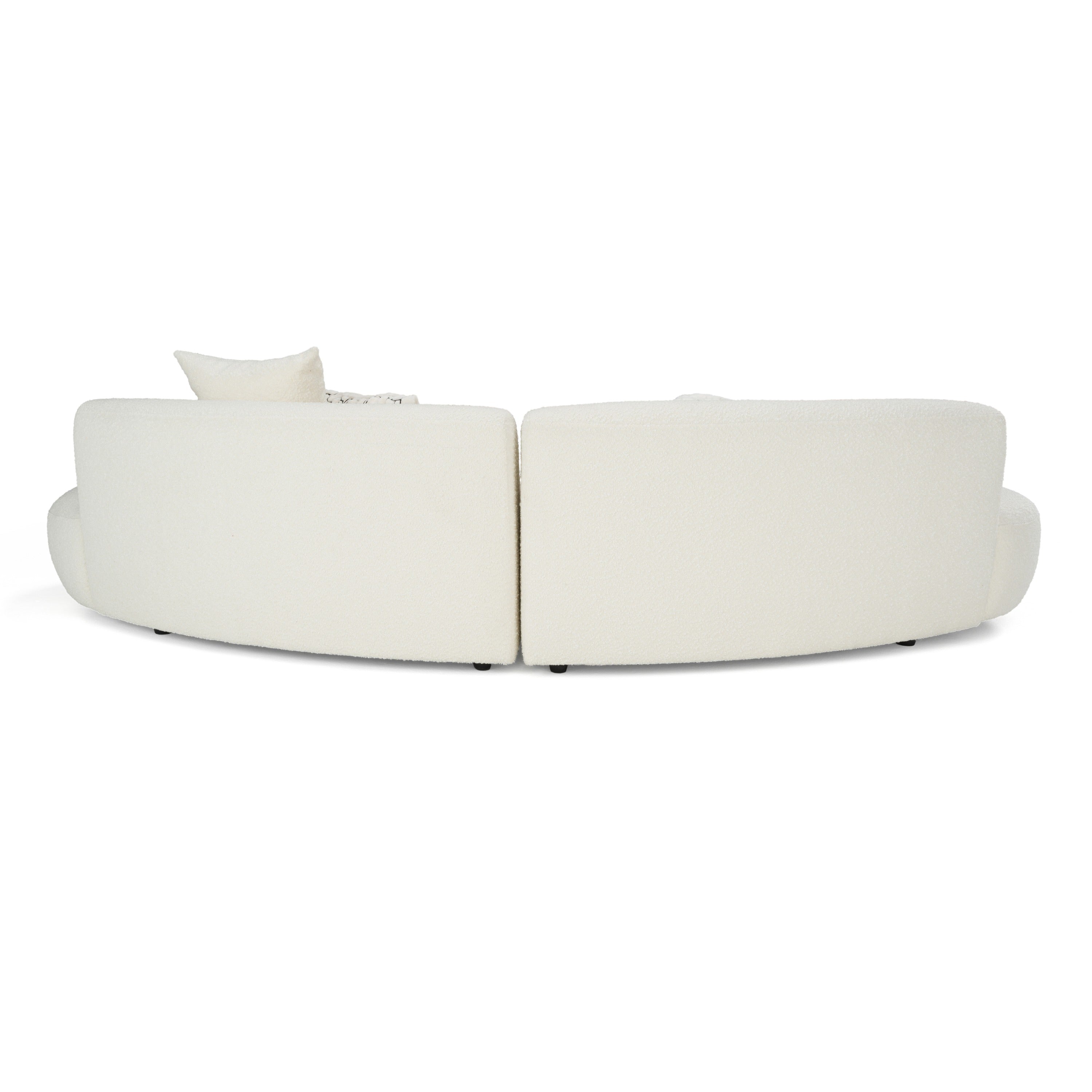 The Divani Casa Weldon Modern Cream Fabric Curved Sectional radiates timeless elegance with its sculptural design and luxurious cream upholstery. This gracefully curved masterpiece reimagines comfort and sophistication, offering an inviting centerpiece for any living space. Adorned with artistically patterned toss pillows, it exudes a refined yet playful charm. Expertly crafted with attention to detail, the Weldon sectional effortlessly complements contemporary interiors, creating a serene and stylish atmosphere that beckons relaxation and conversation.