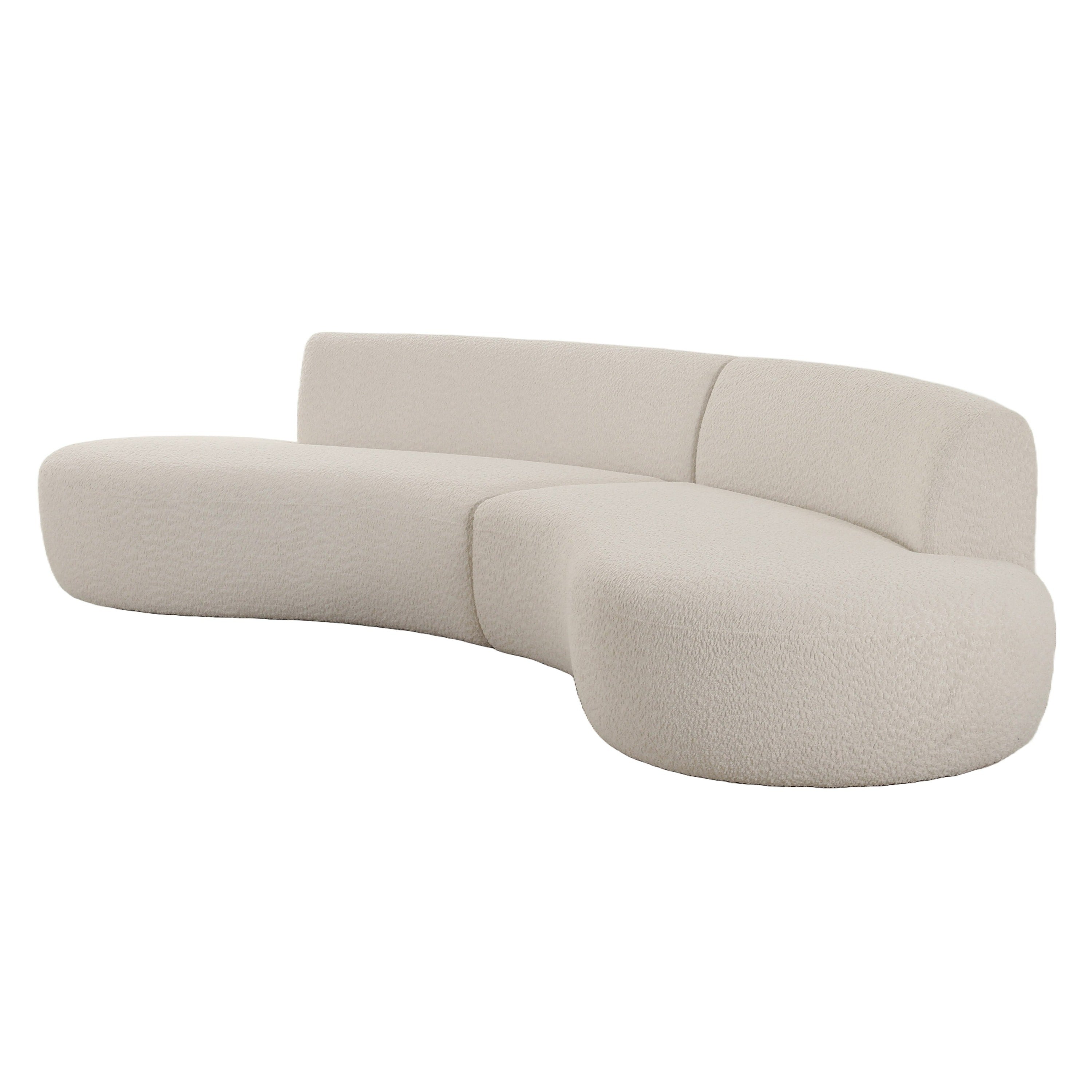 The Divani Casa Weldon Modern Off-White Fabric Curved Sectional redefines contemporary luxury with its graceful curves and harmonious design. Upholstered in a soft, creamy fabric, this sectional invites relaxation while serving as a striking focal point in any sophisticated living space. Its seamless symmetry and included accent pillows bring an artistic touch, blending comfort with sculptural elegance. Perfect for entertaining or quiet moments, the Weldon sectional transforms your home into a refined sanctuary of style and comfort.