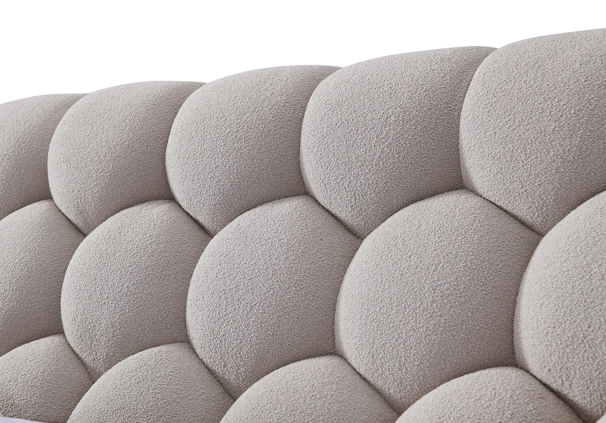 Introducing the Divani Casa Yolonda, a stunning modern bed that exudes elegance and comfort. Wrapped in a chic beige fabric, its unique, rounded design features a tufted headboard, providing a plush, inviting look. The softly curved edges and vertical channeling create a harmonious blend of contemporary style and coziness, making it a perfect statement piece for any bedroom. The Yolonda bed is designed to be both aesthetically pleasing and incredibly comfortable, ensuring a restful night s sleep while enhancing your interior décor.