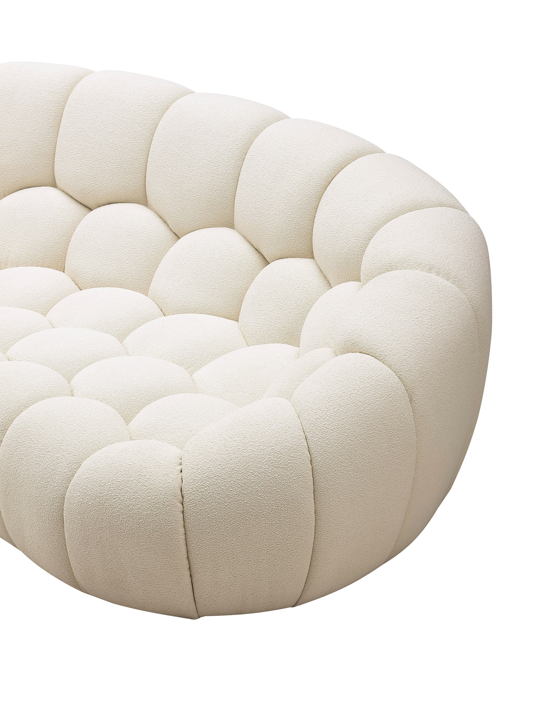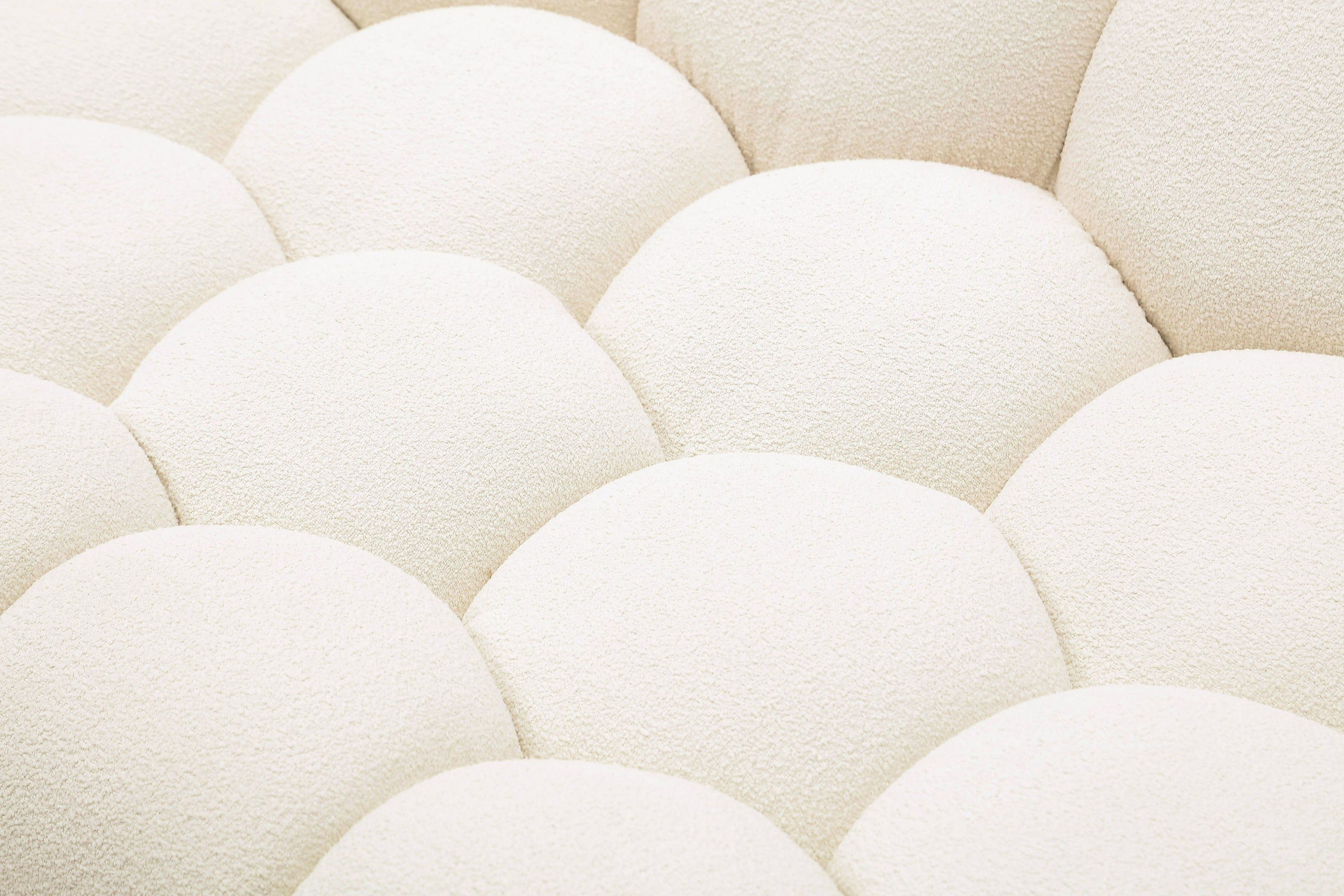 The Yolonda Loveseat is a Curved Modern Off-White furniture piece, offering an alternative addition to your living room. The hexagonal tufted cushions provide a unique, non-traditional and stylish design for the sofa as well as the teddy fabric upholstery providing maximum comfort.The Yolonda also comes in a Sectional Sofa, Standard Sofa and Accent Chair.
