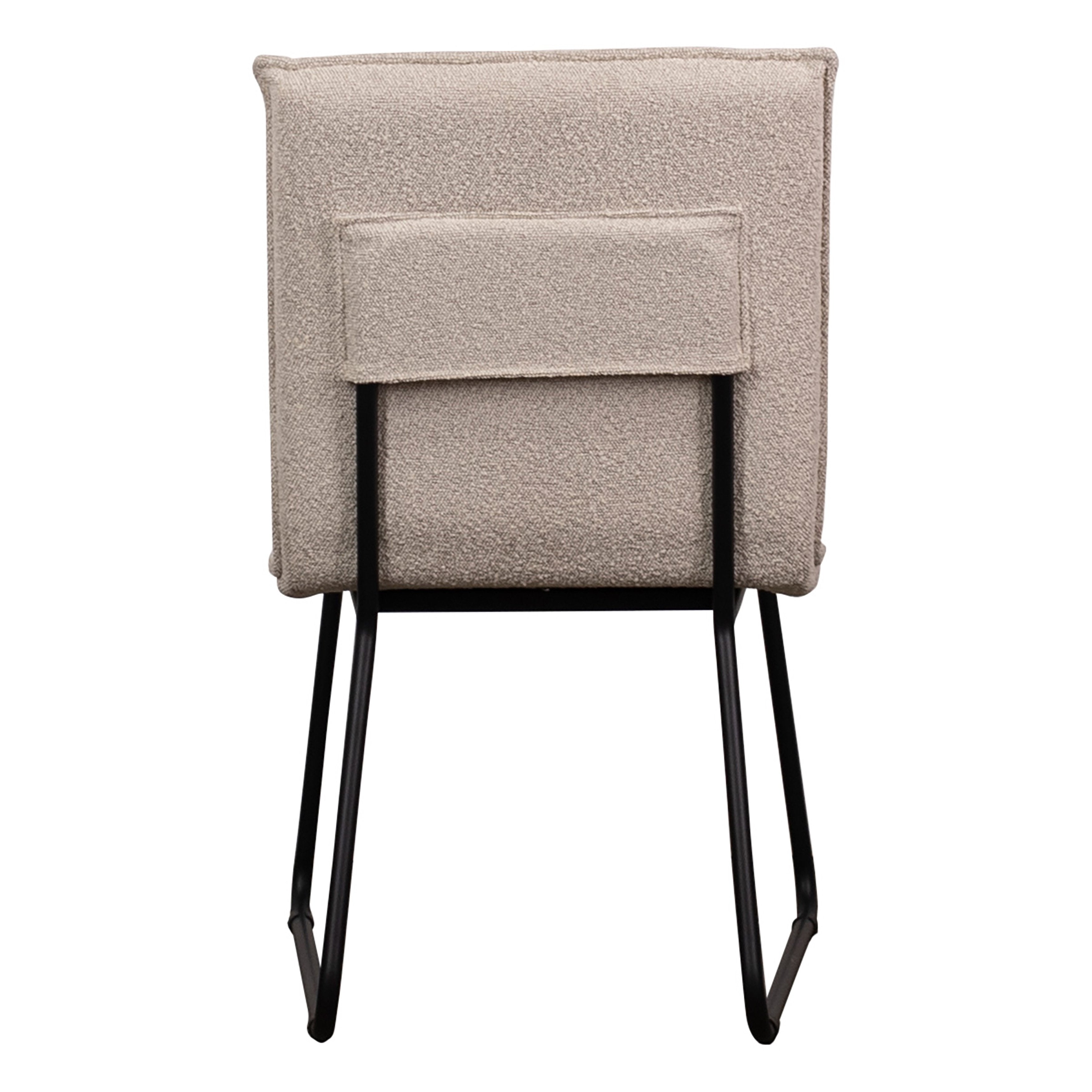Designed with understated sophistication to elevate your home decor, our Dusk Dining Chair exudes a contemporary look that adds a touch of sophistication to any space. The slender black metal frame beautifully complements the padded seating, upholstered in versatile polyester fabric in a sand colorway. The knife-edge stitching enhances its visual appeal with refined elegance. Embrace the perfect combination of style and functionality with this exquisite addition to your dining area.??