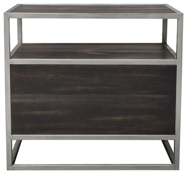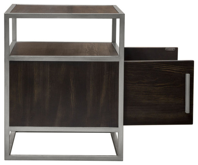 Empire 2-Door End Table, Dark Brown Veneer With Hand brushed Silver Metal Frame By Diamond Sofa