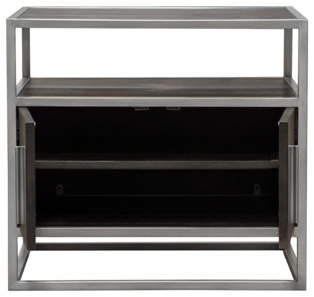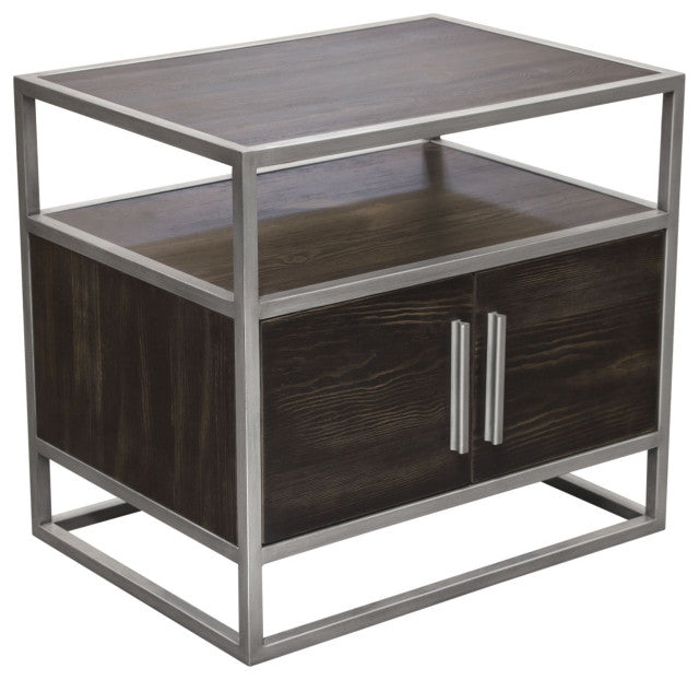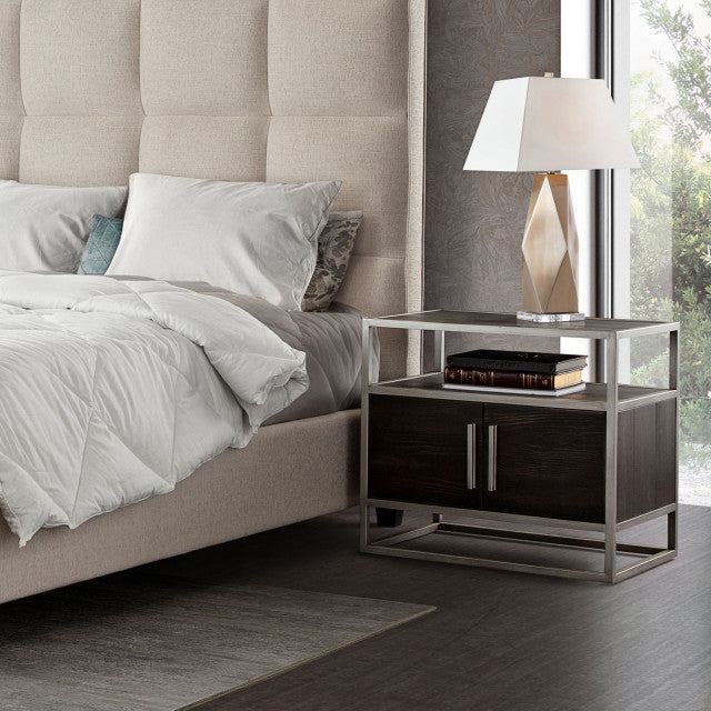 Empire 2-Door End Table With Silver Metal Frame, Dark Brown By Diamond Sofa