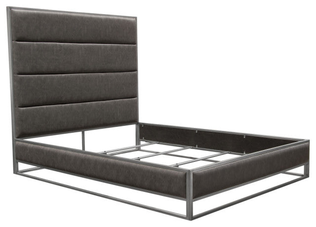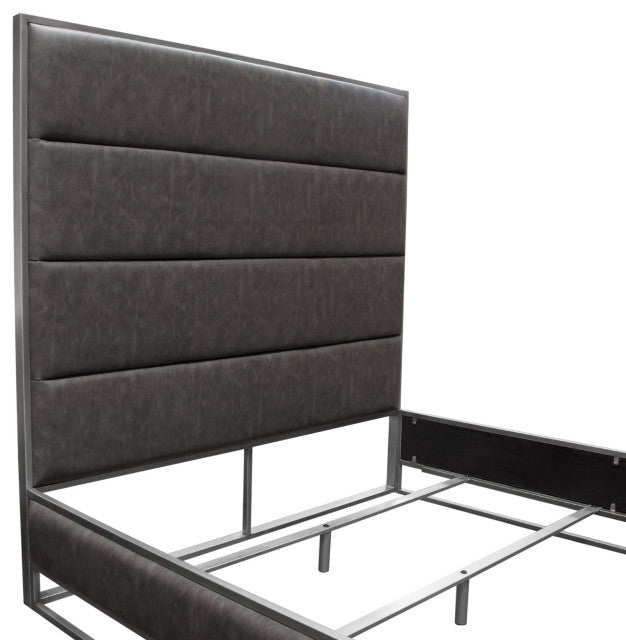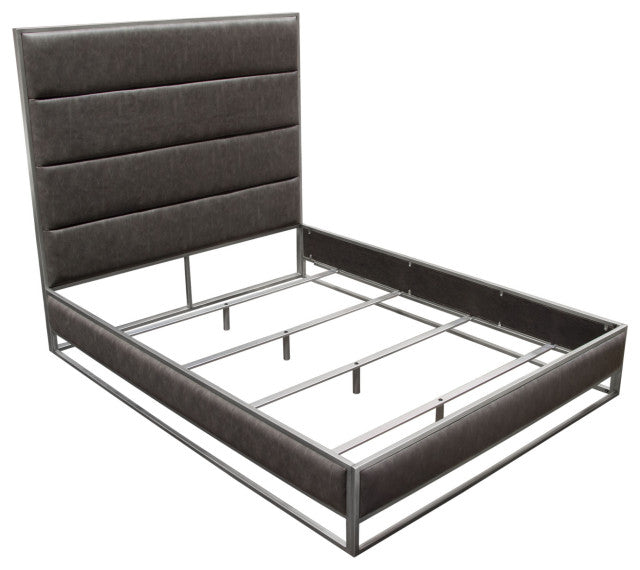Empire Eastern King Bed in Weathered Grey PU Hand brushed Silver Metal Frame By Diamond Sofa