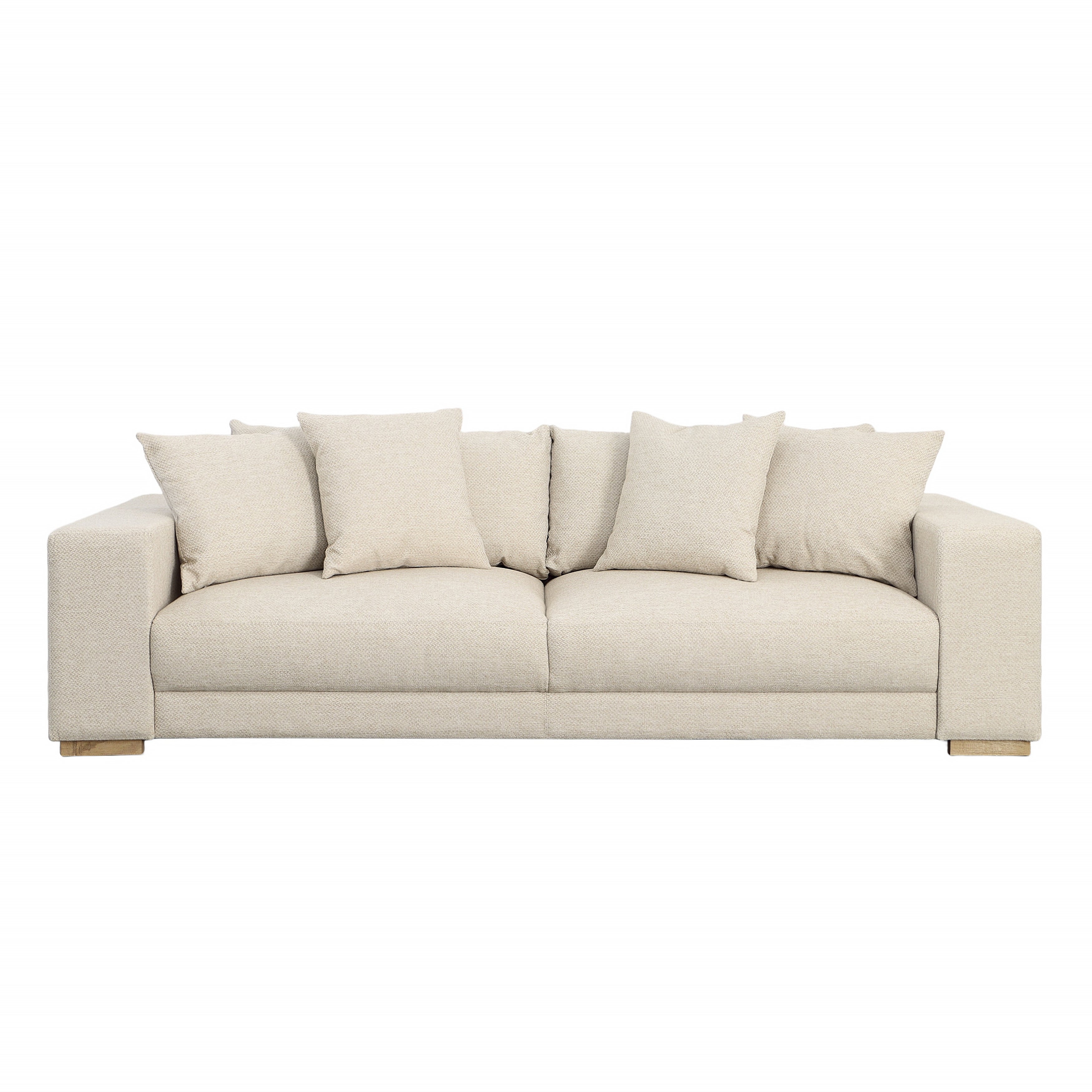 The Estella Sofa exemplifies modern elegance with a graceful silhouette and luxurious cushions that give it a timeless and contemporary look. Featuring a versatile frame with clean lines made from select hardwood and high-quality polyester upholstery in a neutral color palette. This sofa is 31" tall and 98 wide, providing a generous amount of space for lounging and resting.