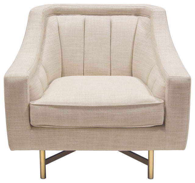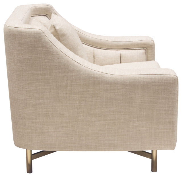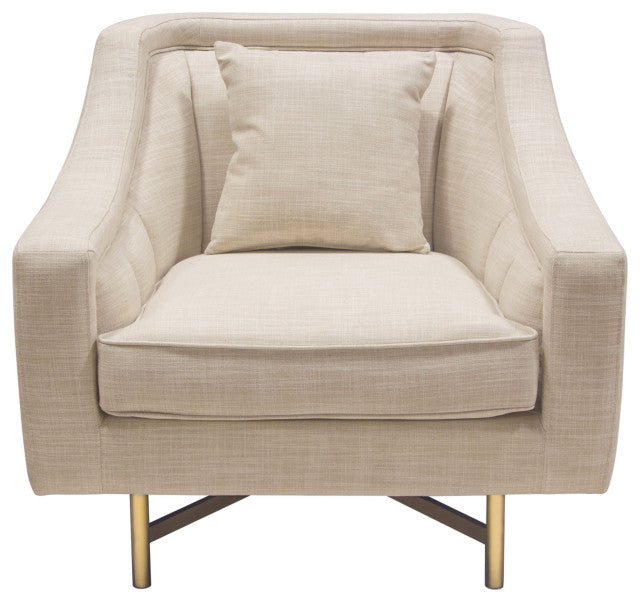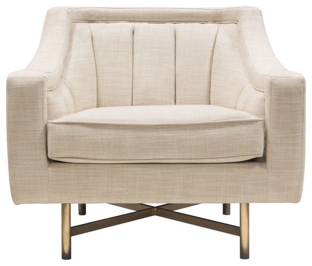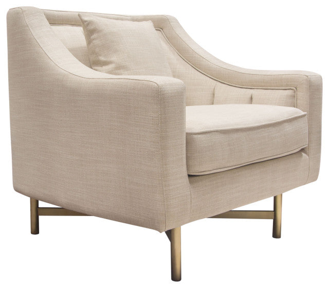 Fabric Chair in Sand Linen Fabric Accent Pillow and Gold Metal Criss-Cross Frame By Diamond Sofa
