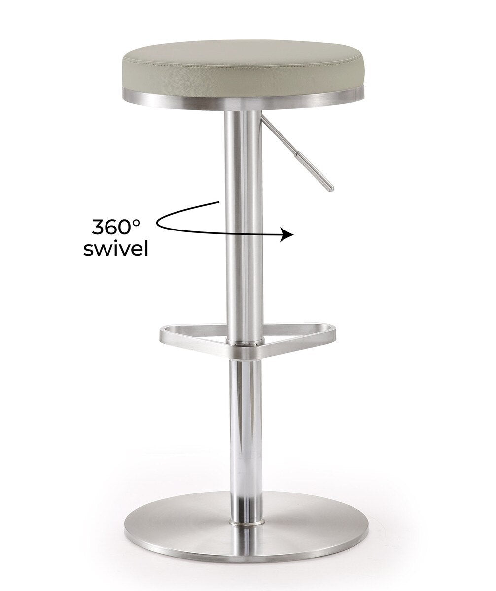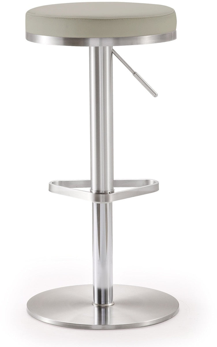 Fano Light Grey Performance Vegan Leather and Stainless Steel Barstool Model: TOV-K3653