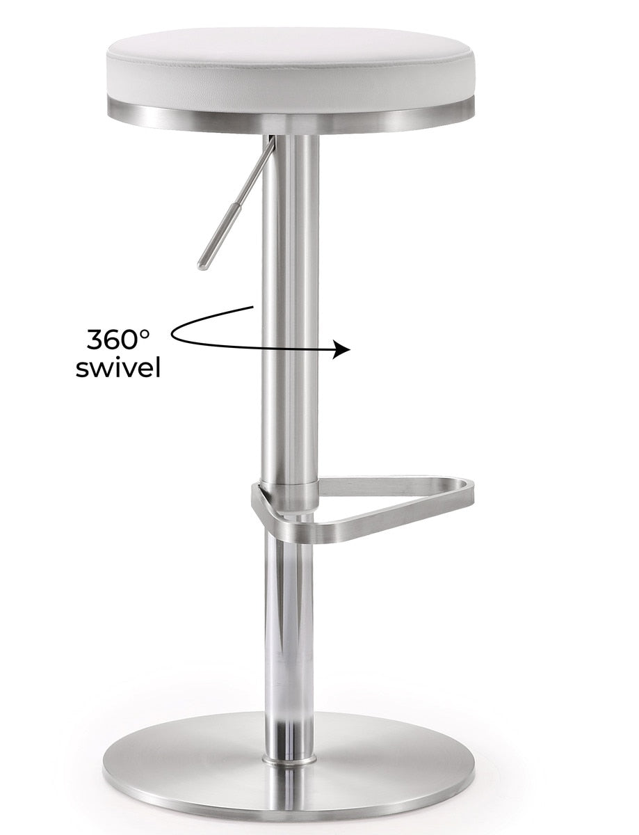 Fano White Performance Vegan Leather and Stainless Steel Adjustable Barstool Model: TOV-K3614