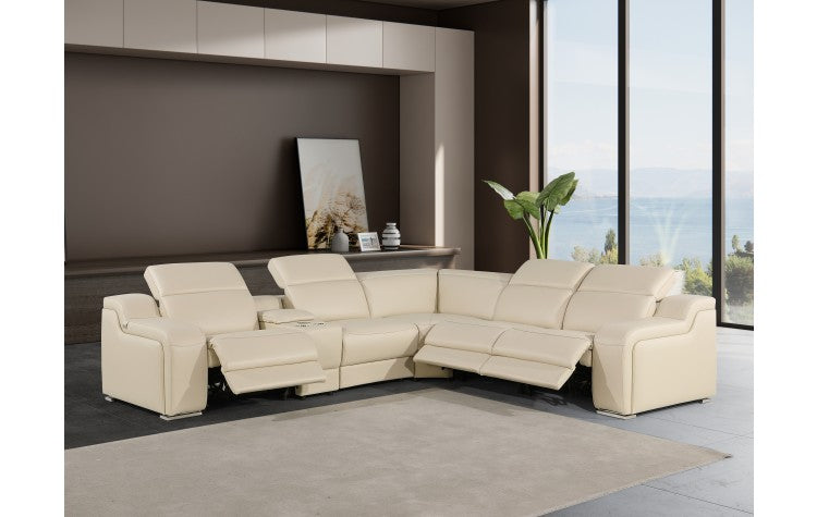 1116 DivanItalia Beige Top-Grain Italian Leather 6-Piece Sectional with 3 Power Reclining Seats & Power HeadrestModel: 1116-BEIGE-3PWR-6PC