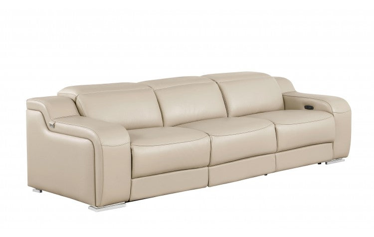 1116 DivanItalia Beige Top Grain Italian Leather Power Reclining Sofa with Dual Recliners and Power HeadrestsModel: 1116-BEIGE-3.2-S-HT