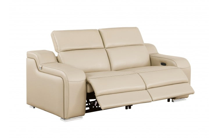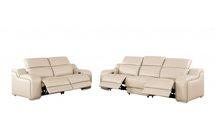 1116 DivanItalia Beige Modular Power Reclining Sofa and Loveseat Set – Top Grain Italian Leather with Power HeadrestsModel: 1116-BEIGE-5.4-HT-2PC