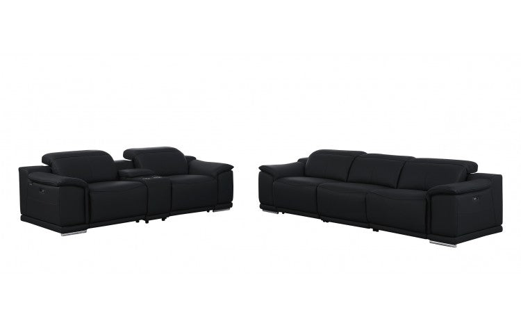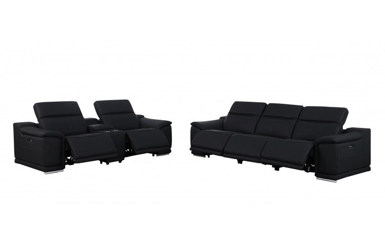 1116 DivanItalia Black 6-Piece Modular Power Reclining Sofa and Loveseat Set with Power Headrests - Top Grain Italian LeatherModel:  1116-BLACK-6.5-HT