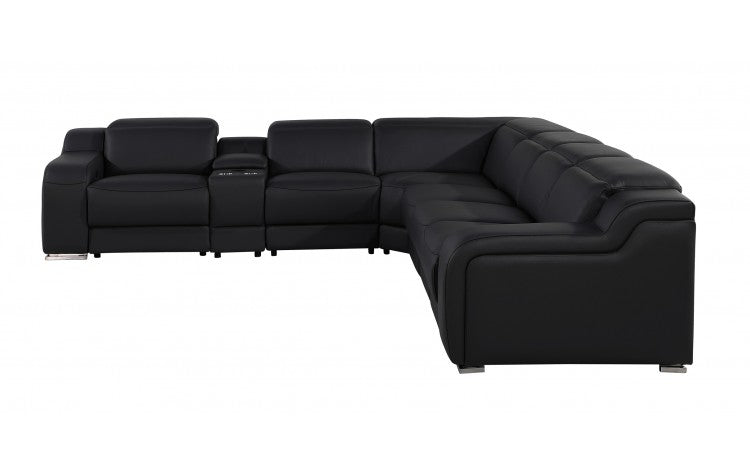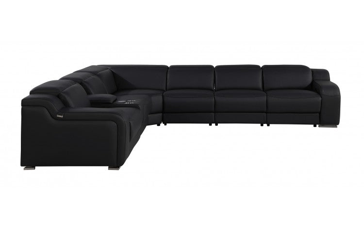 1116 DivanItalia Black Top-Grain Italian Leather 7-Piece Sectional with 3 Power Reclining Seats & Power HeadrestModel: 1116-BLACK-3PWR-7PC