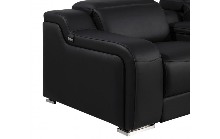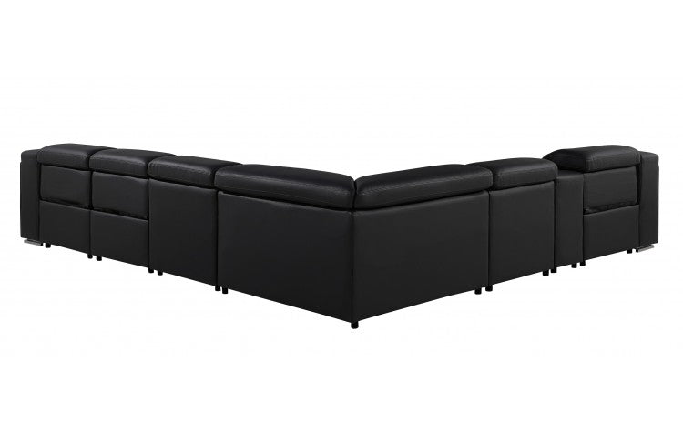 1116 DivanItalia Black Top-Grain Italian Leather 7-Piece Sectional with 3 Power Reclining Seats & Power HeadrestModel:  1116-BLACK-3PWR-7PC