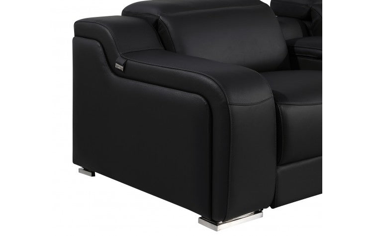 1116 DivanItalia Black Top Grain Italian Leather Loveseat with Power HeadrestModel:  1116-BLACK-2.2-HT
