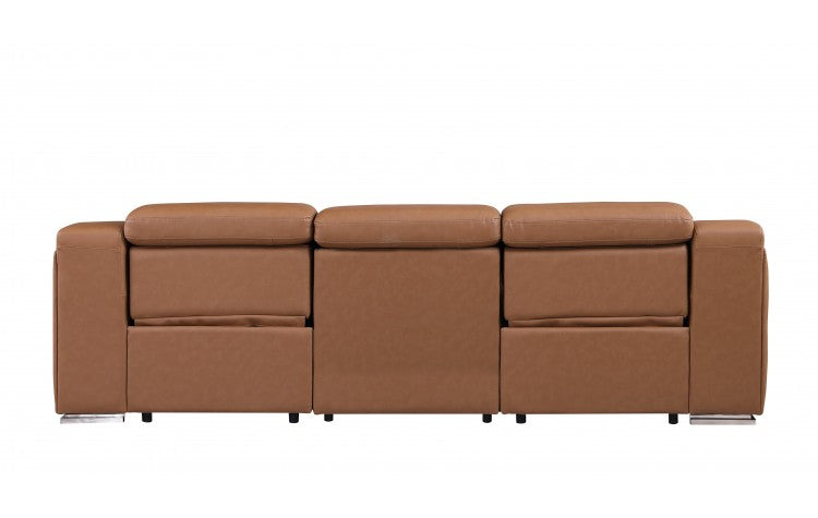 1116 DivanItalia Cognac Top Grain Italian Leather Power Reclining Sofa with Dual Recliners and Power HeadrestsModel: 1116-COGNAC-3.2-S-HT