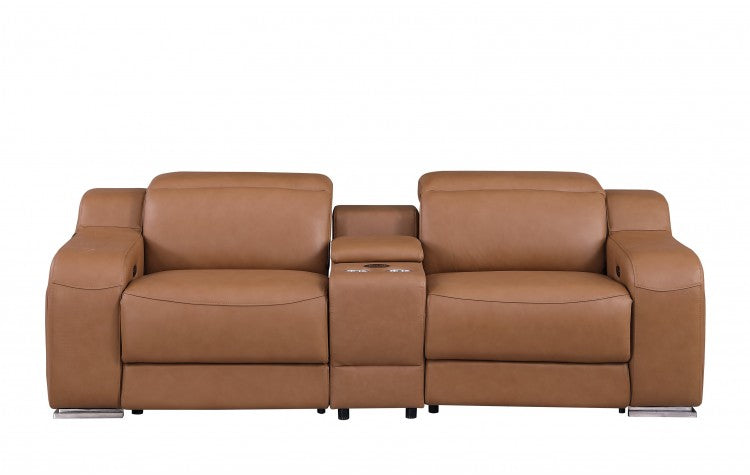 1116 DivanItalia Cognac Modular Power Reclining Loveseat with Power HeadrestModel:  1116-COGNAC-3.2-HT
