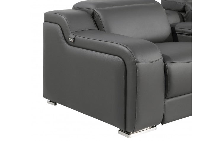 1116 DivanItalia Dark Grey Modular Power Reclining Sofa and Loveseat Set – Top Grain Italian Leather with Power HeadrestsModel: 1116-DK_GREY-5.4-HT-2PC