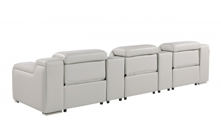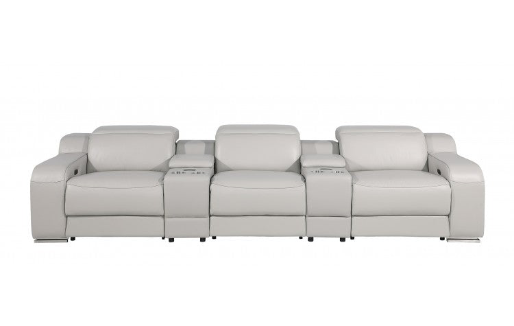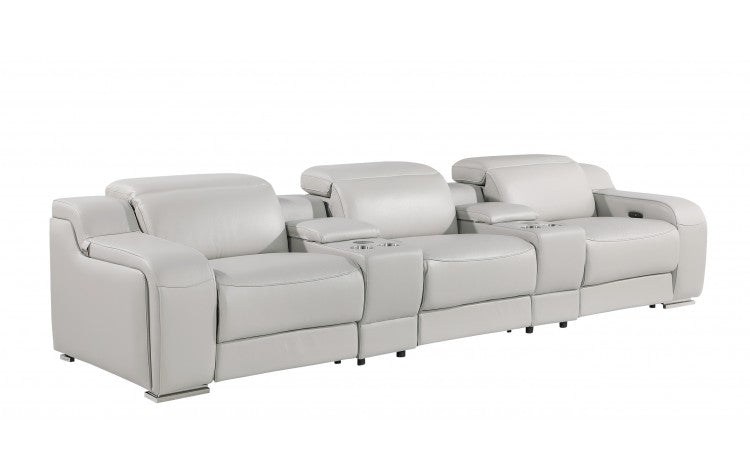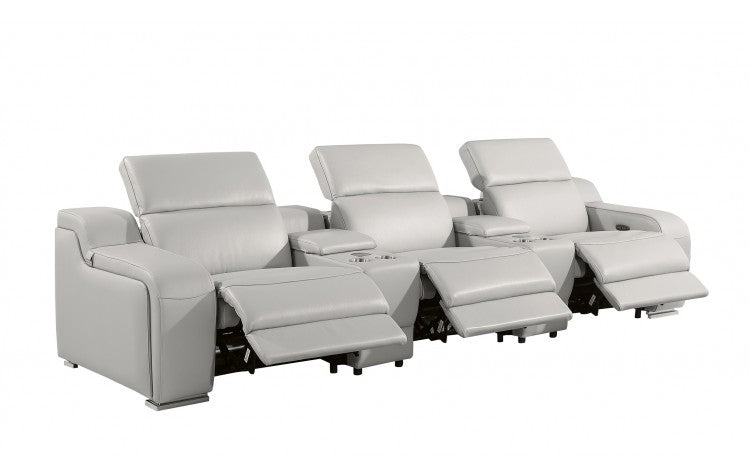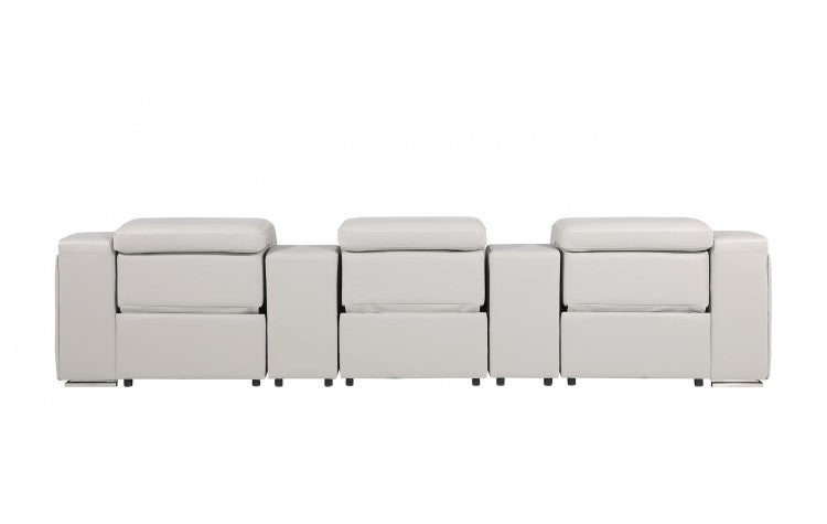 1116 DivanItalia Light Gray 5-Piece Power Reclining Sofa with Power Headrest in Top Grain Italian LeatherModel: 1116-LT_GREY-5.3-HT