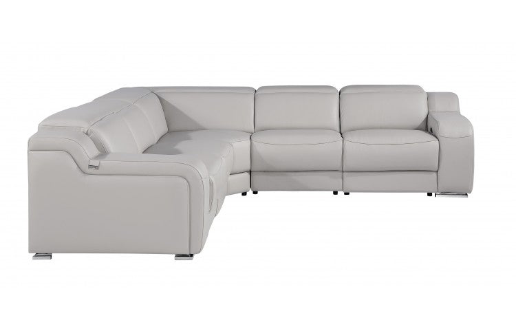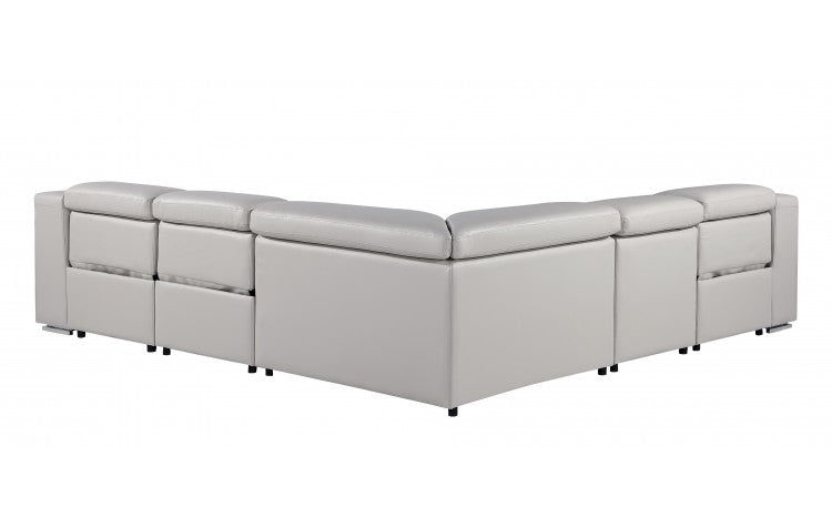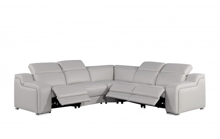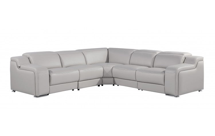 1116 DivanItalia Light Grey Top-Grain Italian Leather 5-Piece Sectional with 3 Power Reclining Seats & Power HeadrestModel: 1116-LT_GRAY-3PWR-5PC