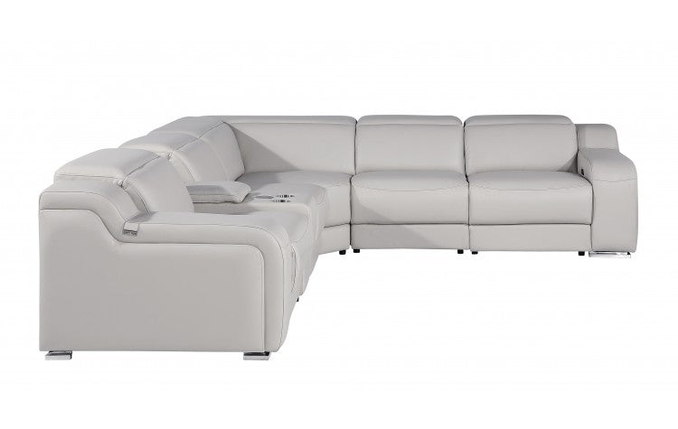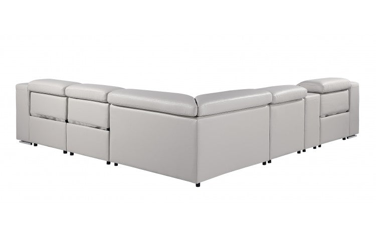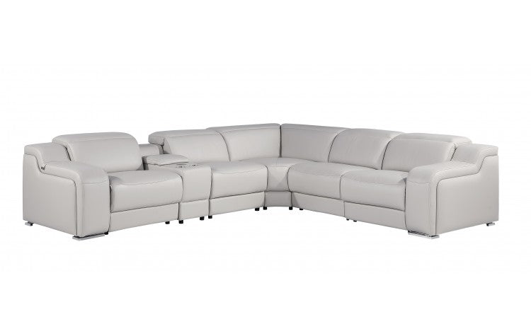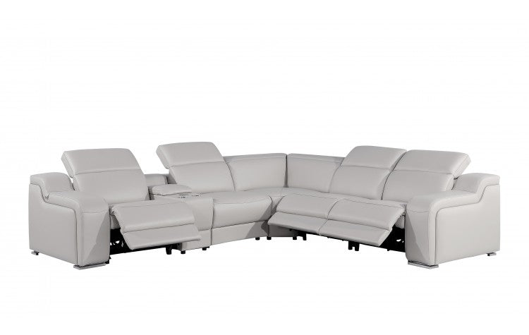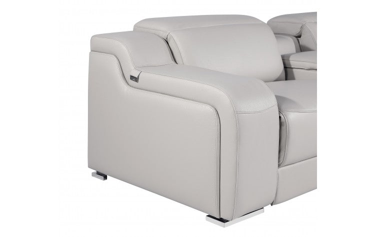1116 DivanItalia Light Grey Top-Grain Italian Leather 6-Piece Sectional with 3 Power Reclining Seats & Power HeadrestModel: 1116-LT_GRAY-3PWR-6PC