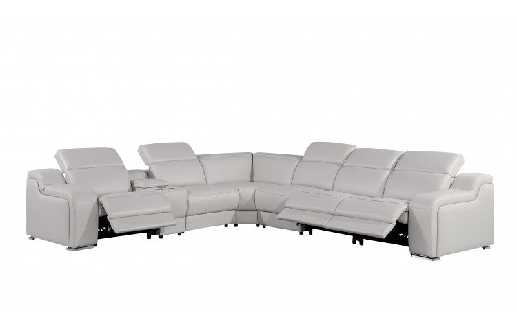 1116 DivanItalia Light Grey Top-Grain Italian Leather 7-Piece Sectional with 3 Power Reclining Seats & Power HeadrestModel:  1116-LT_GRAY-3PWR-7PC
