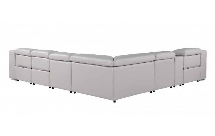 1116 DivanItalia Light Grey Top-Grain Italian Leather 7-Piece Sectional with 3 Power Reclining Seats & Power HeadrestModel: 1116-LT_GRAY-3PWR-7PC