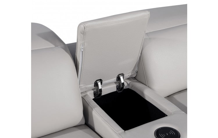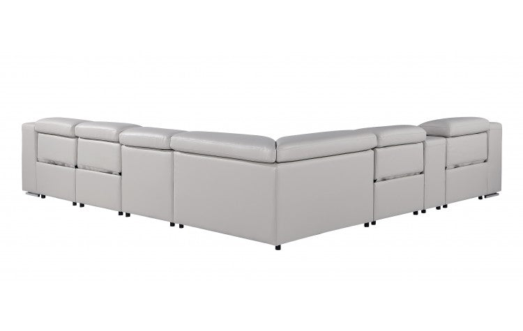 7-Piece Sectional with 4 Power Reclining Seats & Power Headrest , 1116 DivanItalia Light Grey Top-Grain Italian Leather